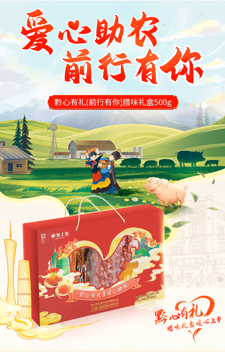 皇上皇中华老字号广式腊肠腊味土特产咸甜团购礼盒福利贵州乡村振兴助农 (前行有你)腊味礼盒500g