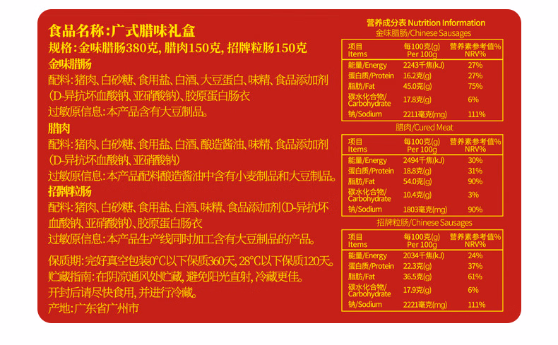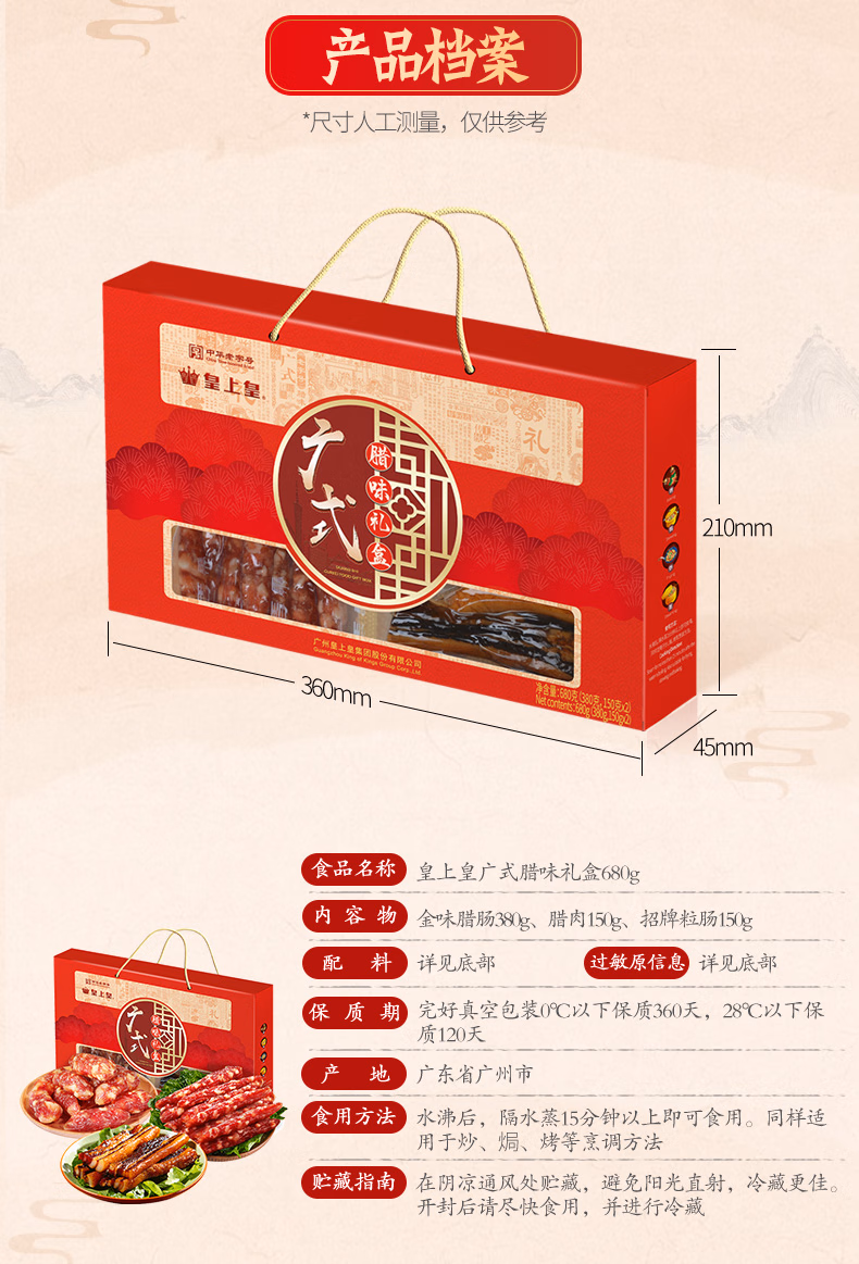 商品名称:皇上皇 中华老字号 广式腊味礼盒680g 广式香肠特产团购节日福利手信