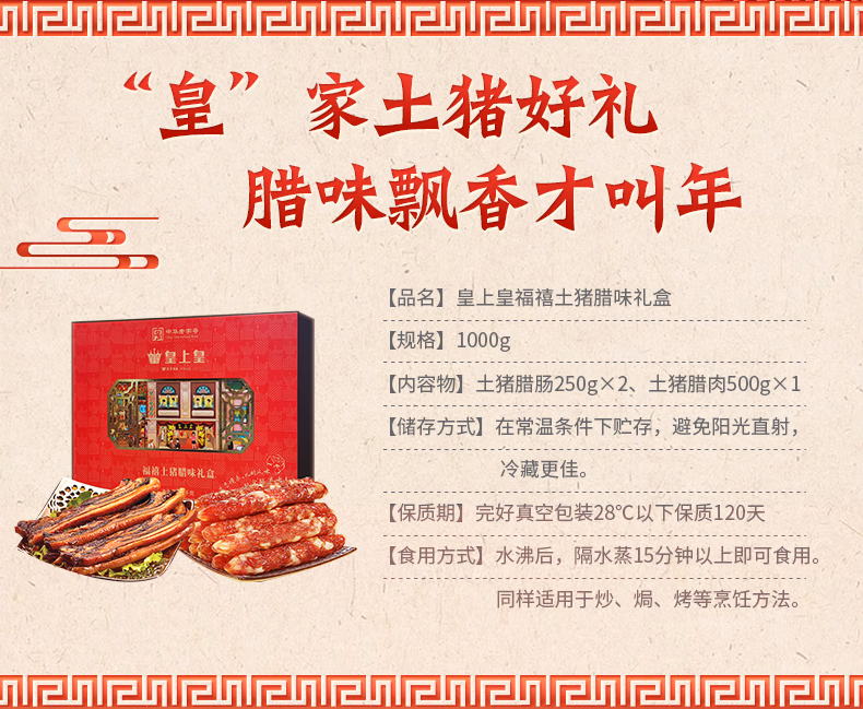 皇上皇老字号广式年货送礼团购福利商务精美佳品 福禧土猪腊味礼盒1000g 福禧土猪腊味礼盒1000g