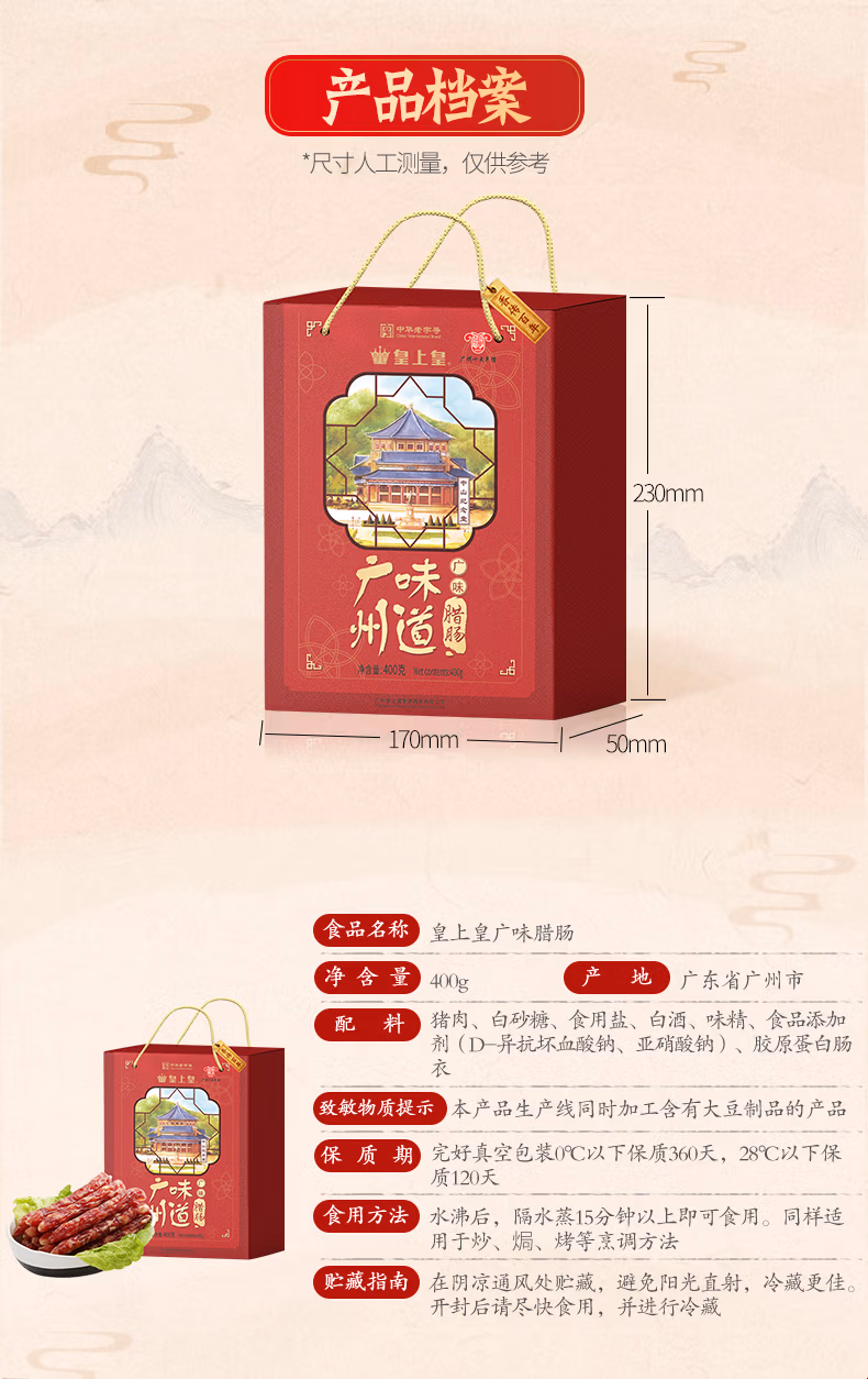 商品名称:皇上皇 中华老字号 广味腊肠礼盒400g 企业福利中秋送礼特产年货团购