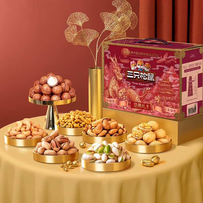 商品名称:三只松鼠坚果礼盒15袋2255g年货零食大礼包送礼开心果夏威夷果碧根果 混发 单位:盒