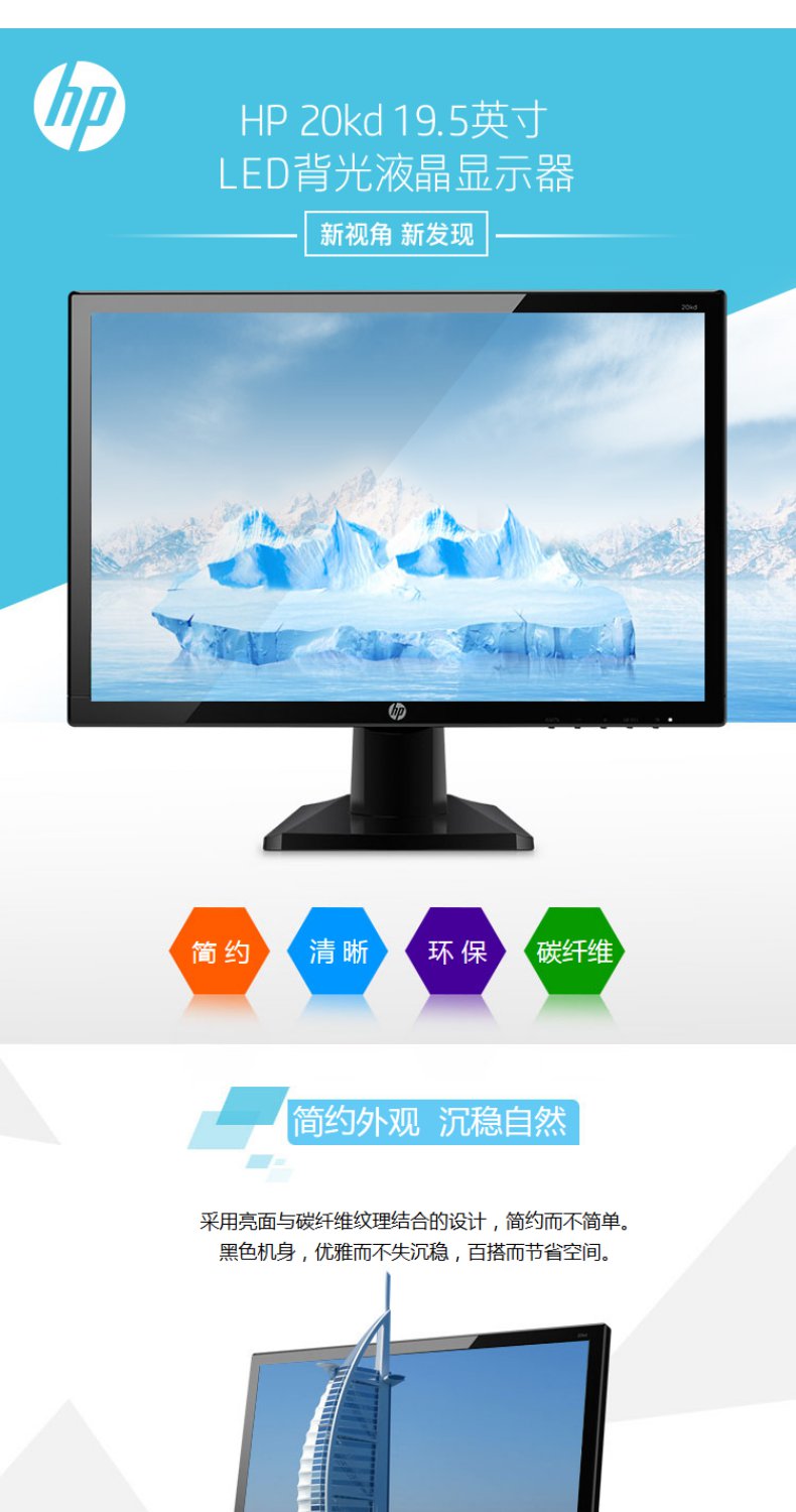 商品名称:惠普/HP 20KD商用19.5英寸IPS LED背光液晶显示器VGA DVI-D接口