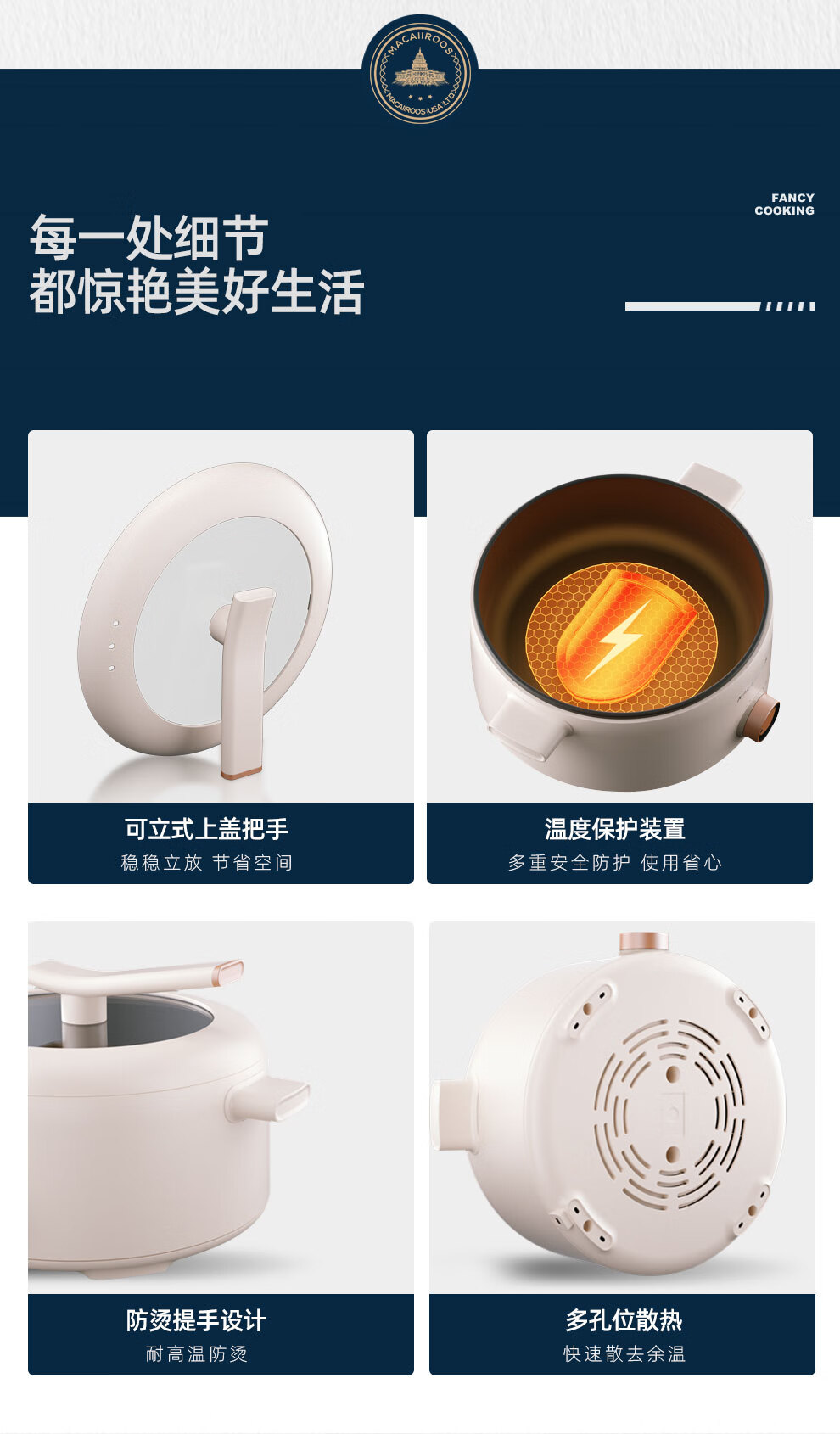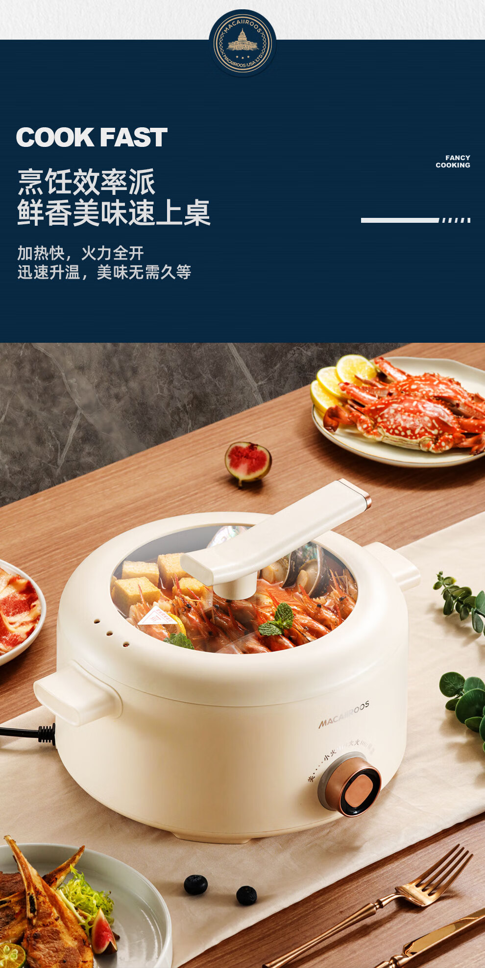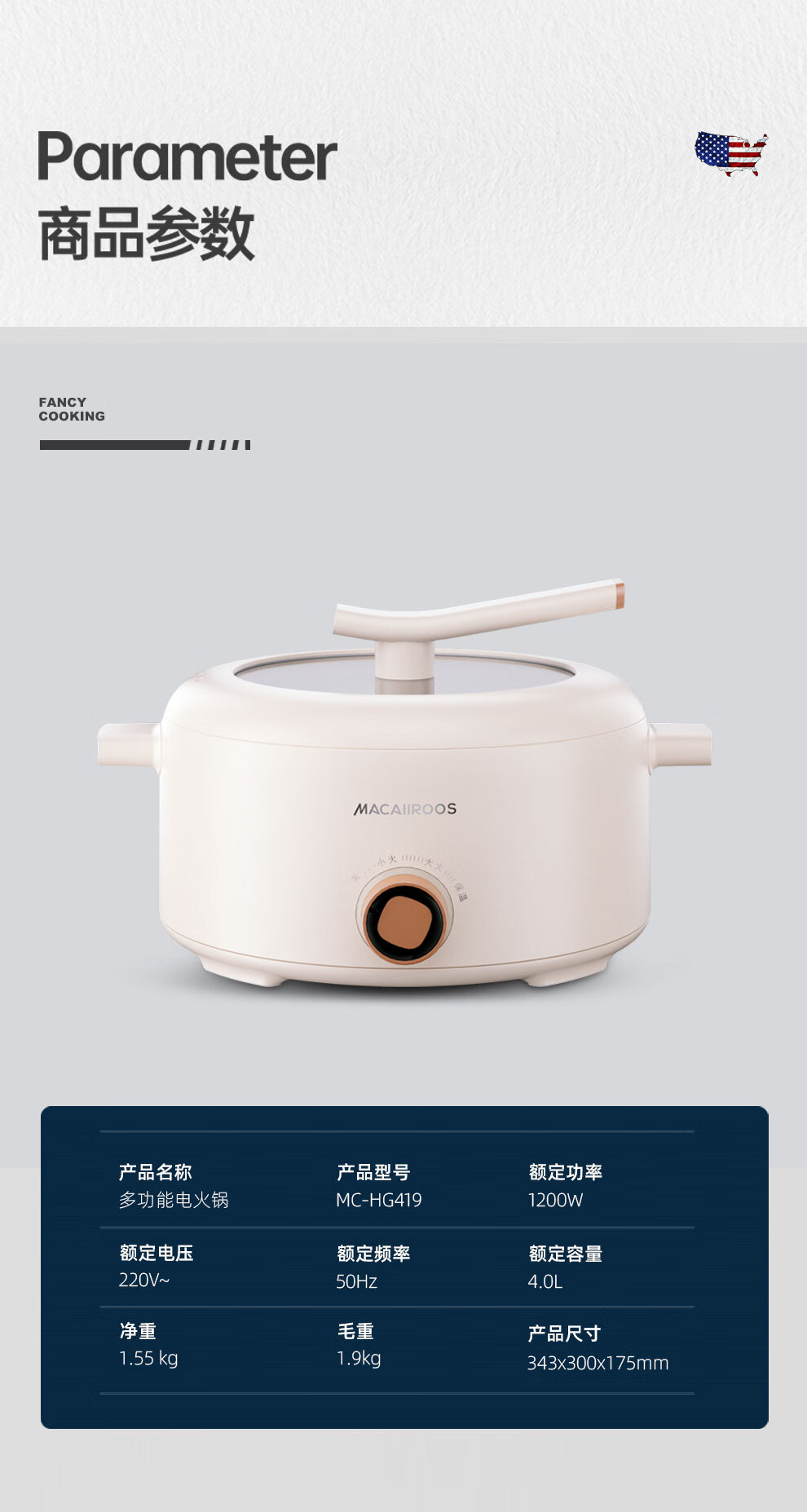 迈卡罗 (MACAIIROOS)电火锅多功能锅家用电煮炖锅料理锅 MC-HG419