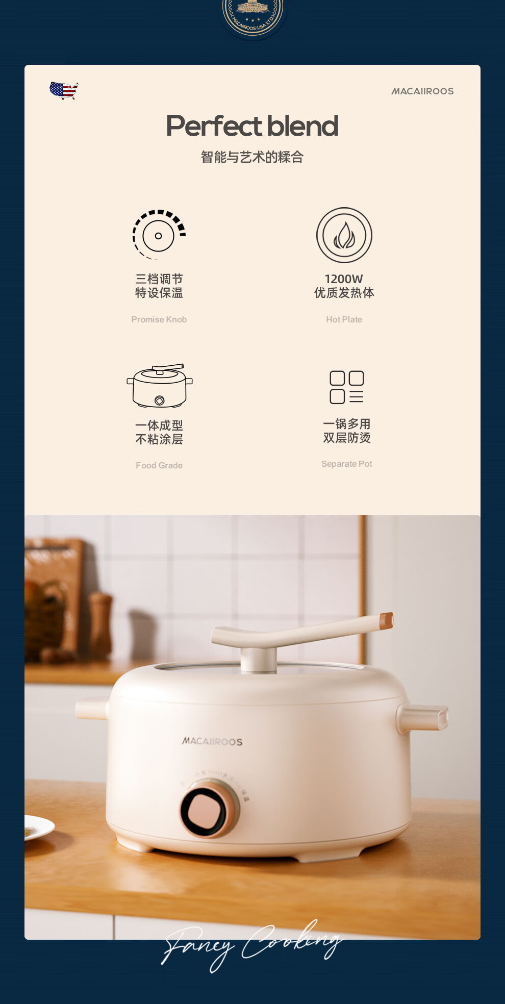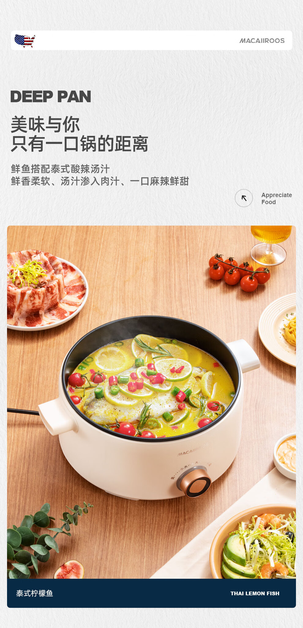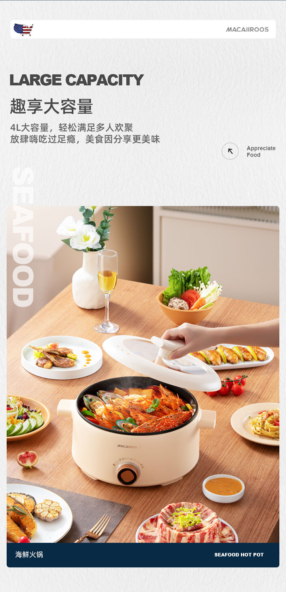 迈卡罗 (MACAIIROOS)电火锅多功能锅家用电煮炖锅料理锅 MC-HG419