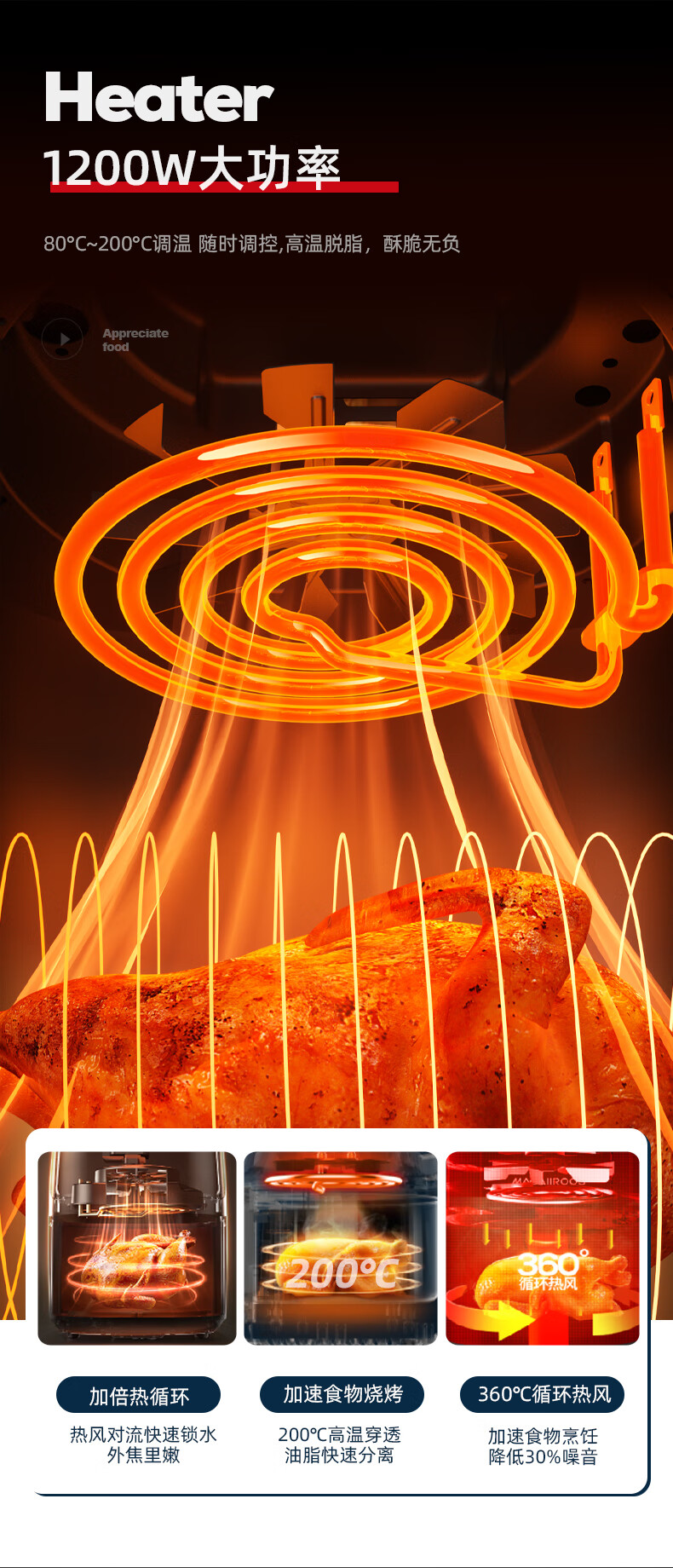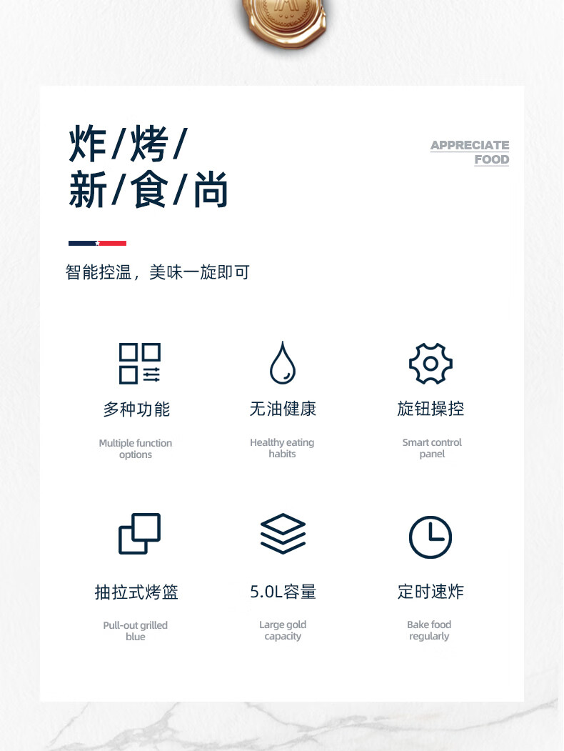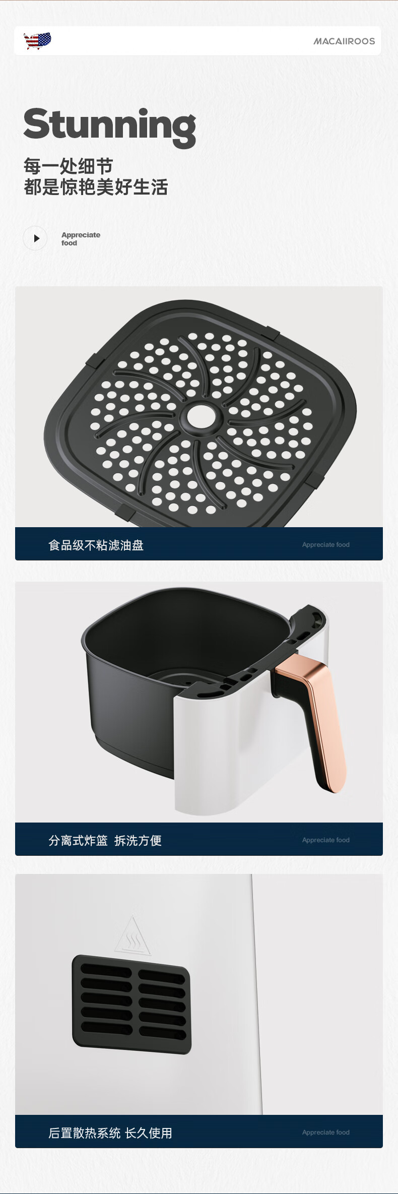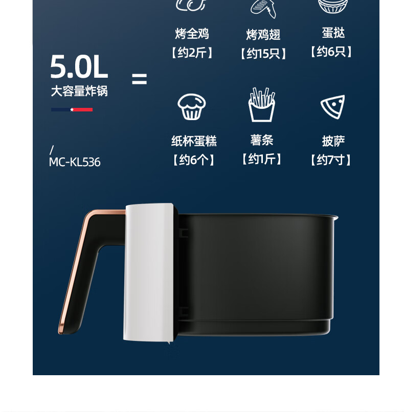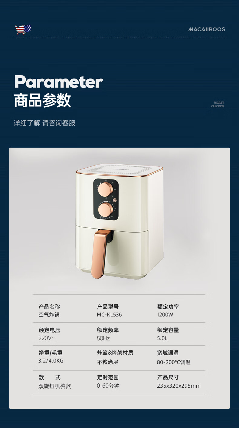 商品名称:迈卡罗 空气炸锅家用精准定时无油烟电炸锅低脂薯条机不沾煎炸锅 MC-KL536