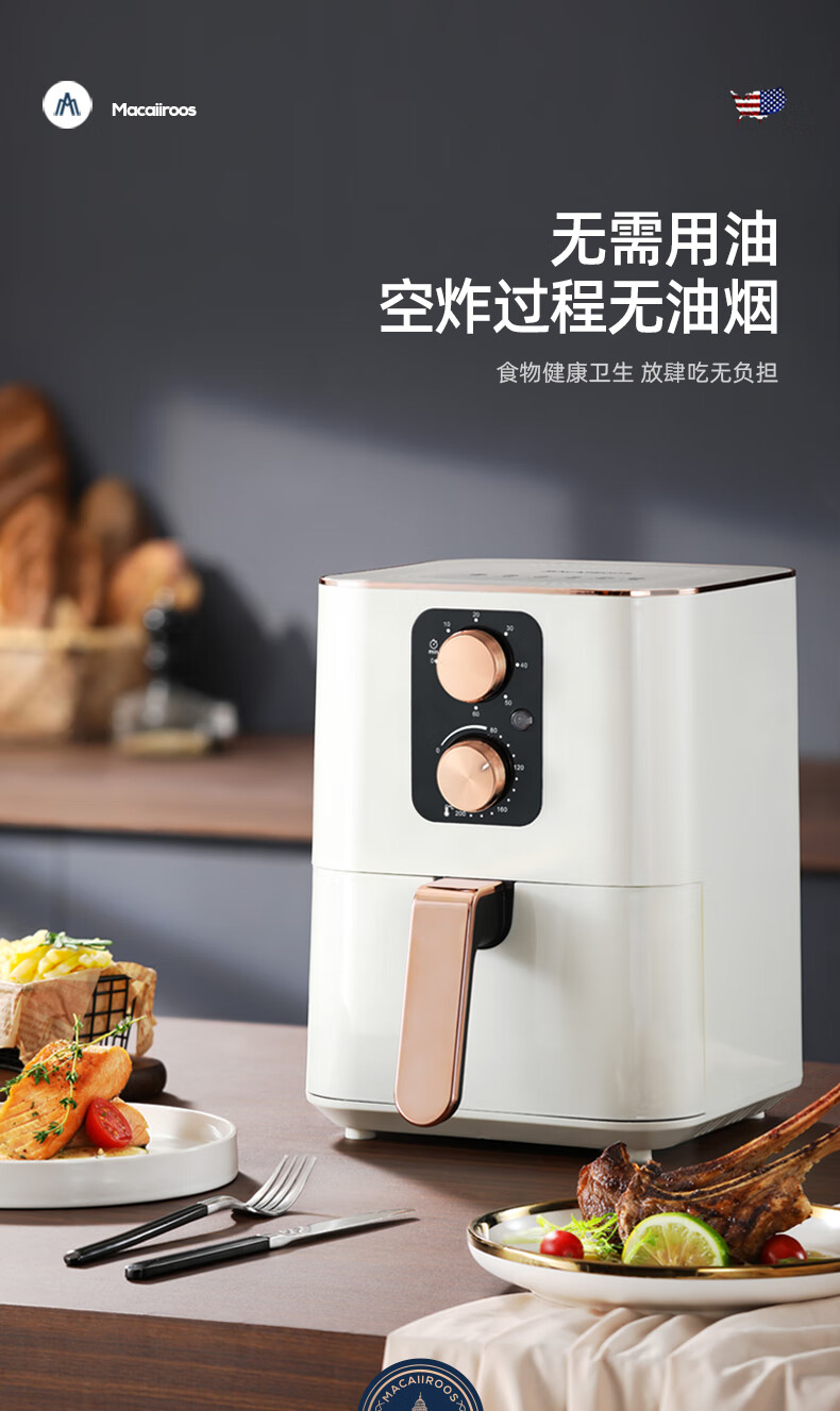 迈卡罗 空气炸锅家用精准定时无油烟电炸锅低脂薯条机不沾煎炸锅 MC-KL536