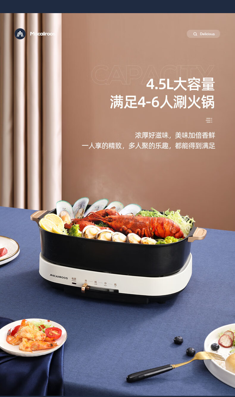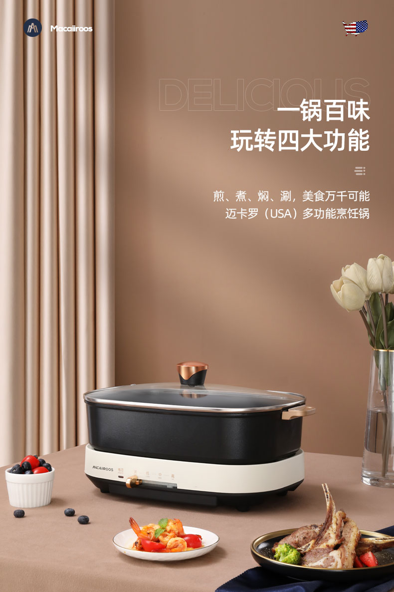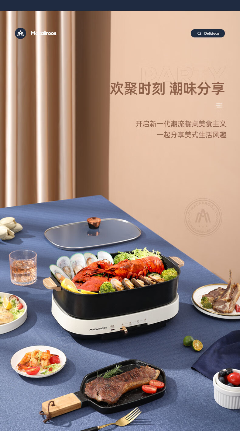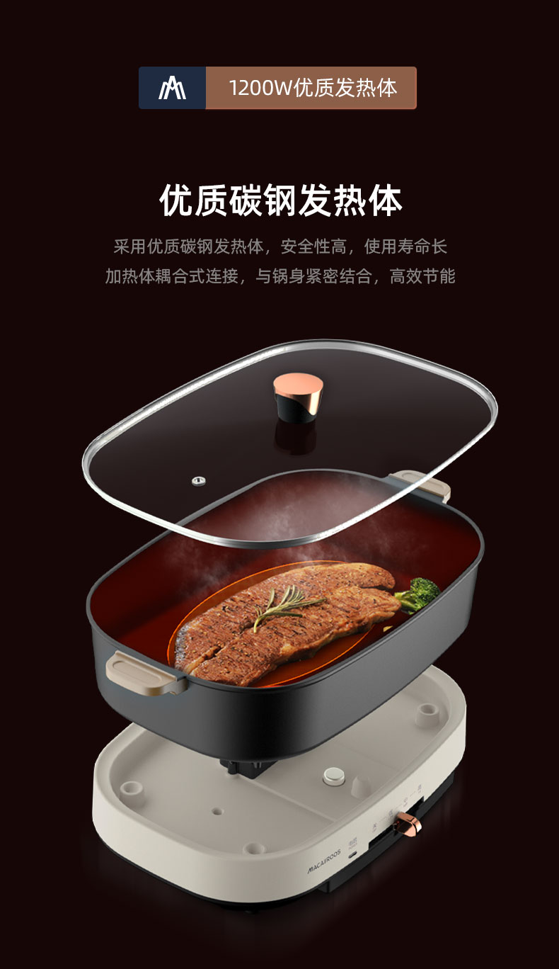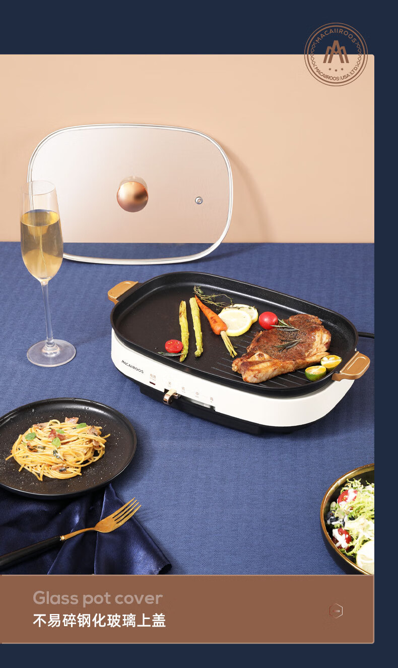 商品名称:迈卡罗 (MACAIIROOS)多功能锅料理锅多用途锅烤肉锅家用电热火锅煎烤涮一体 MC-HG351