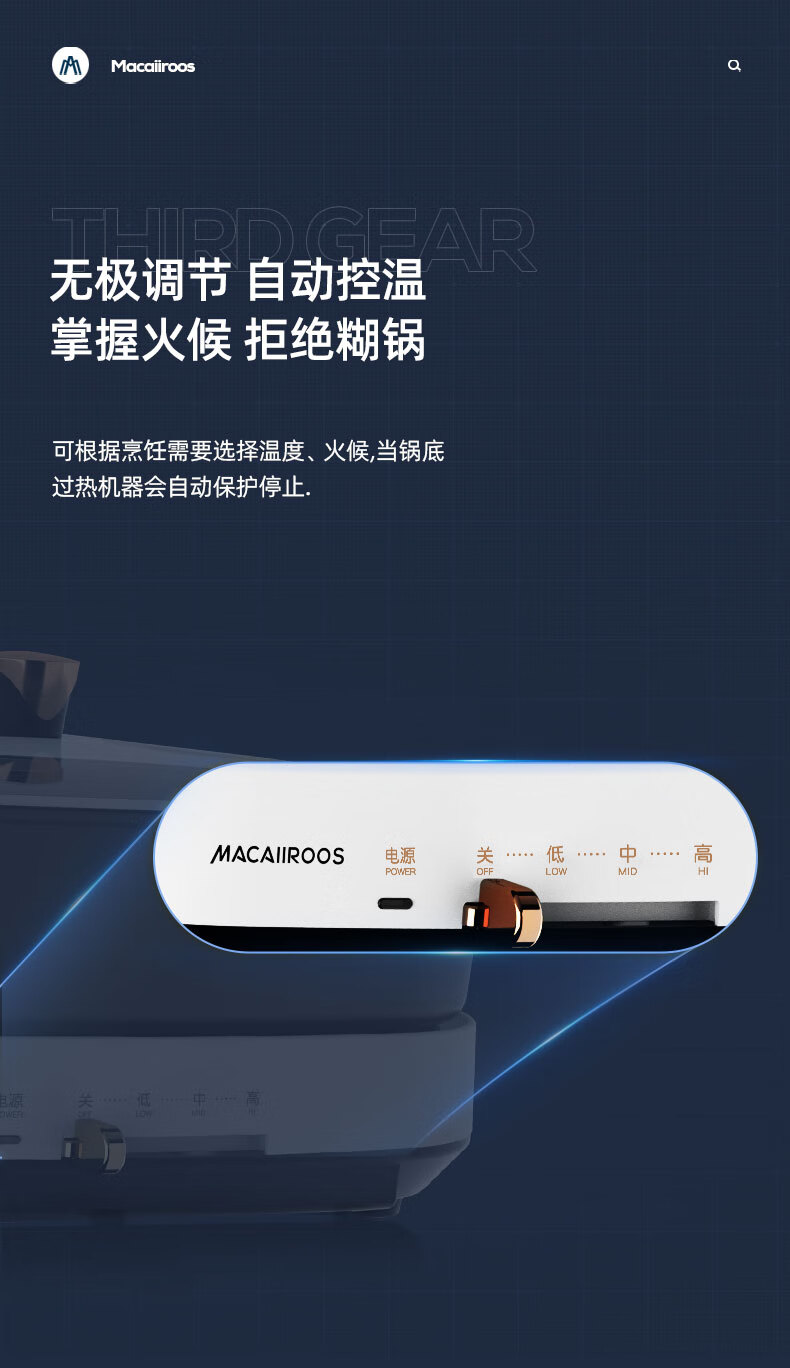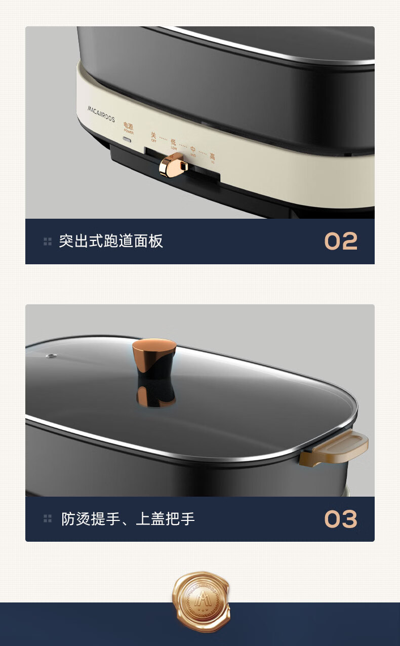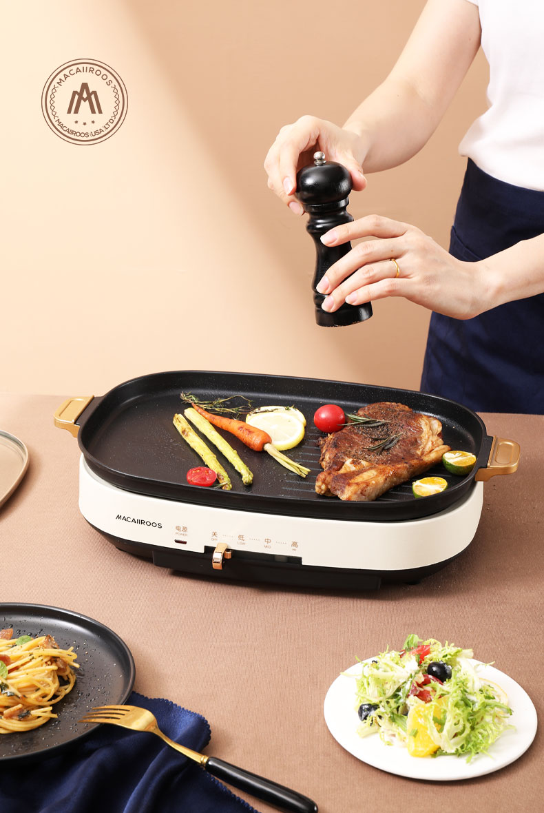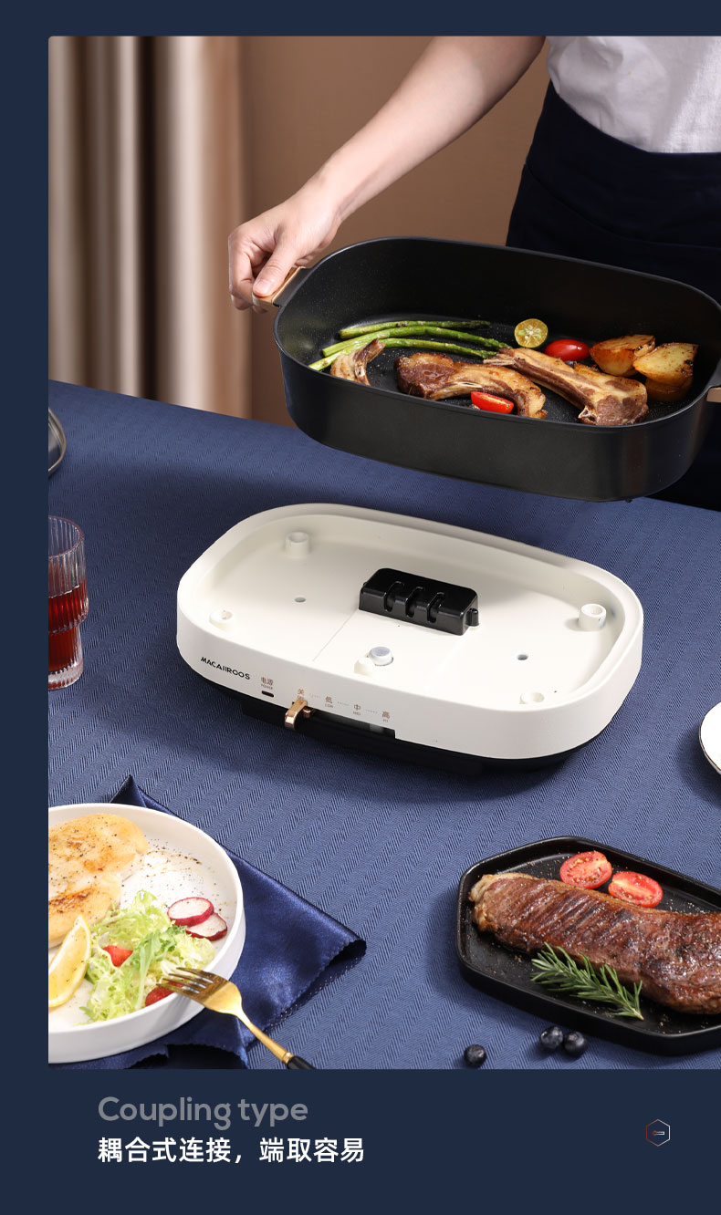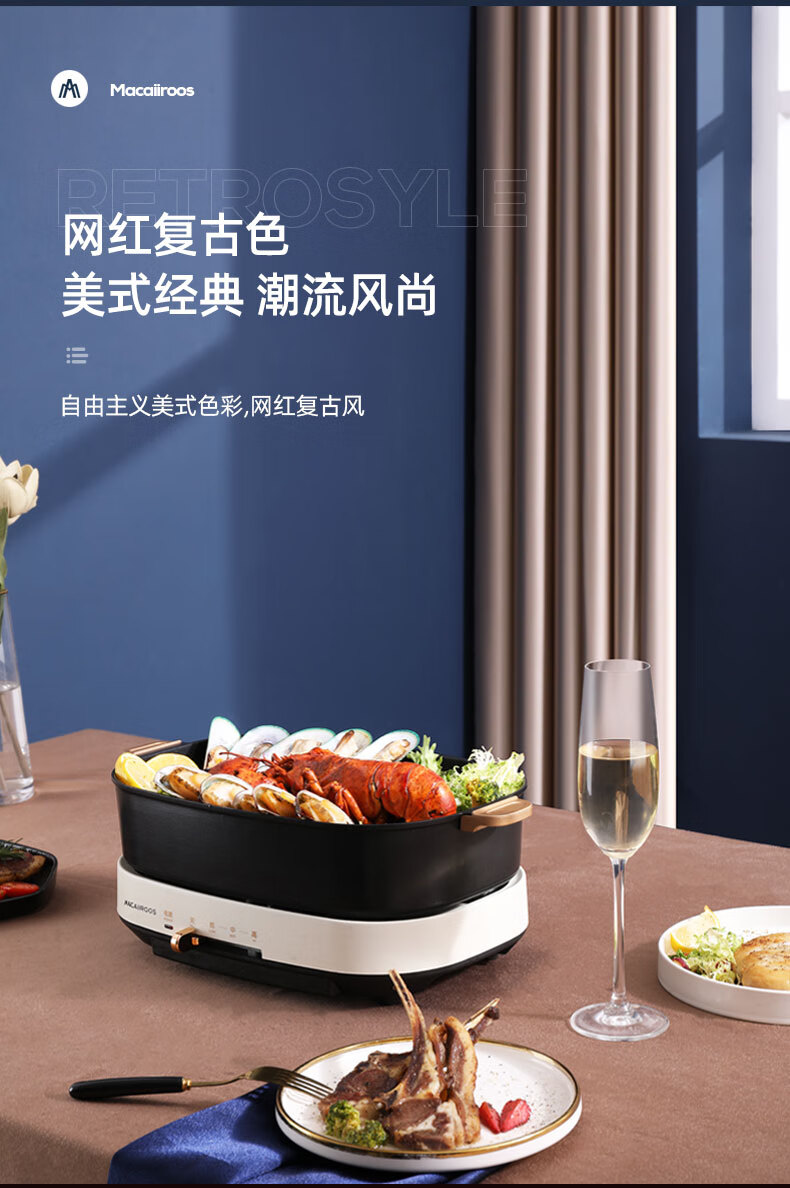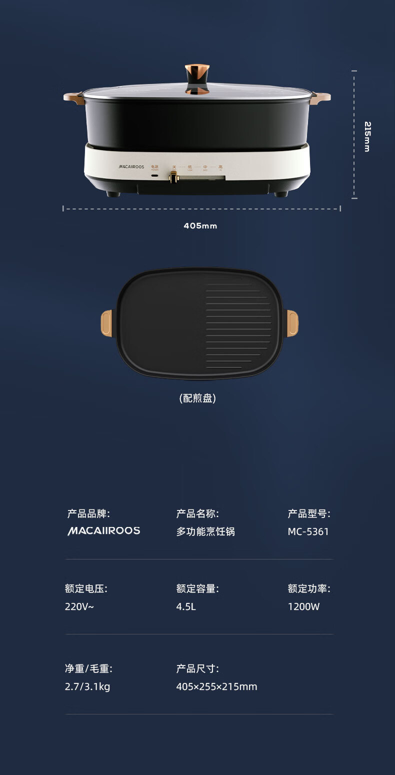 商品名称:迈卡罗 (MACAIIROOS)多功能锅料理锅多用途锅烤肉锅家用电热火锅煎烤涮一体 MC-HG351