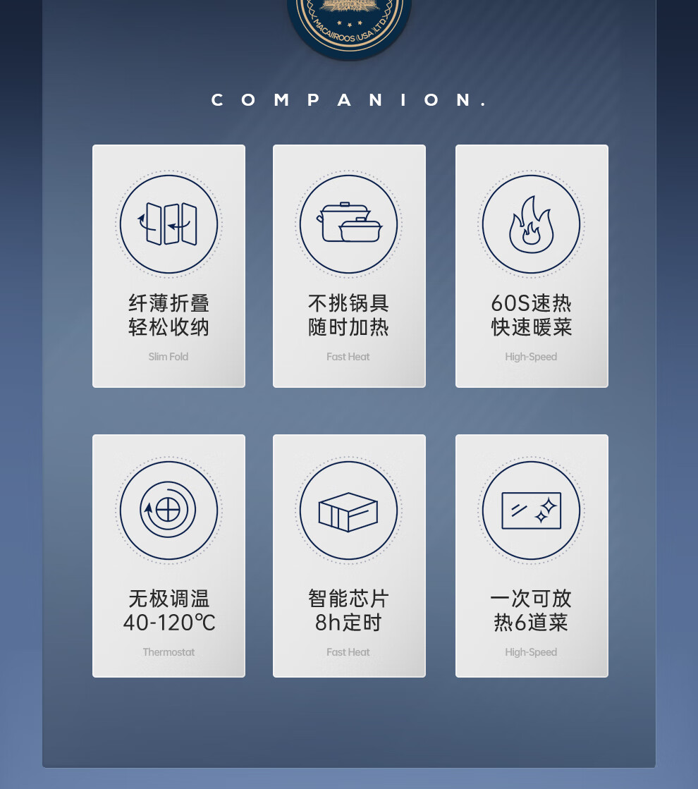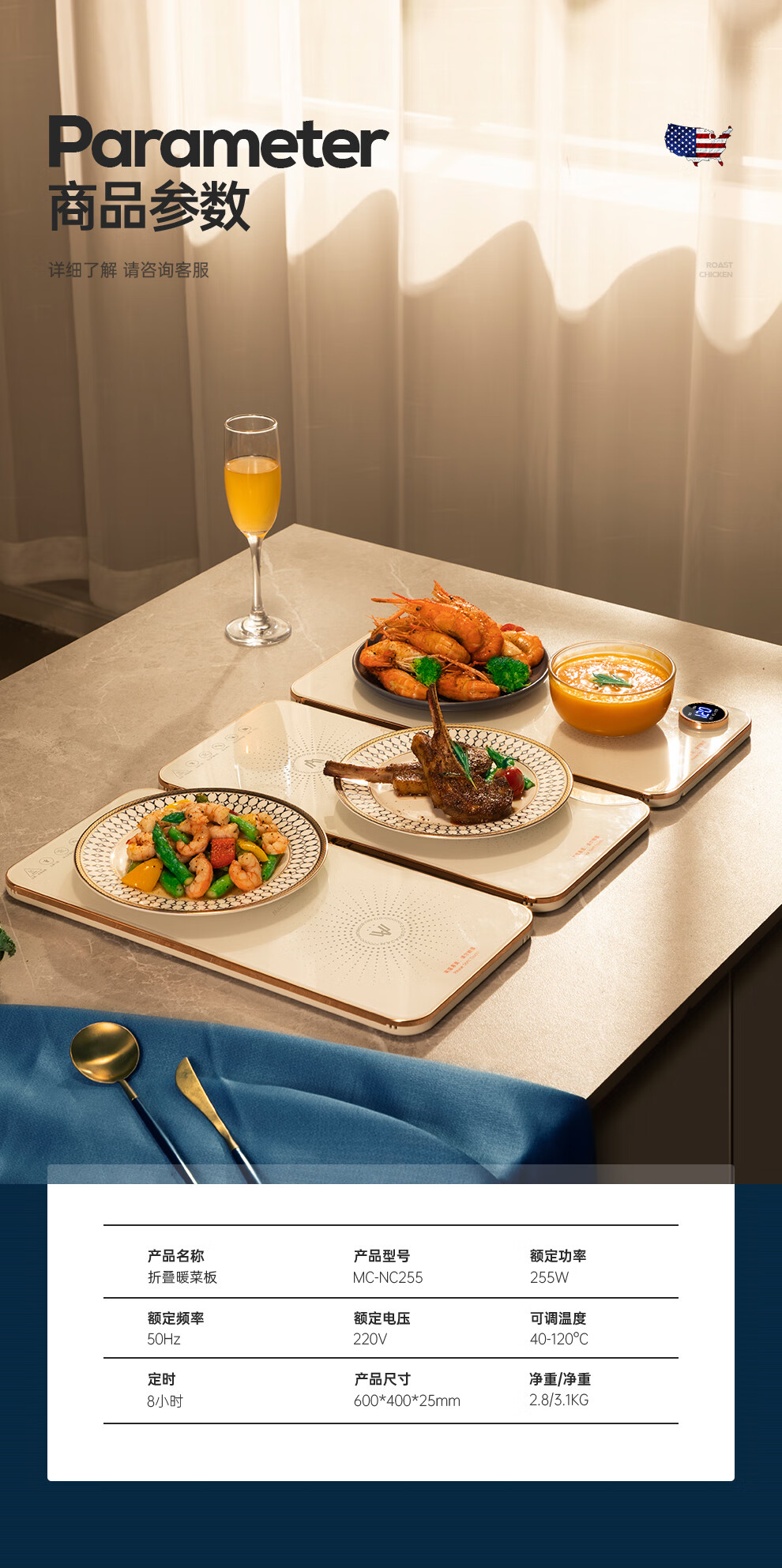 商品名称:迈卡罗 暖菜板拼叠家用保温板调温饭菜保温板加热多功能方形恒温桌垫 MC-NC255