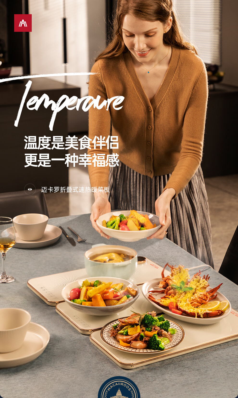 迈卡罗 暖菜板拼叠家用保温板调温饭菜保温板加热多功能方形恒温桌垫 MC-NC255