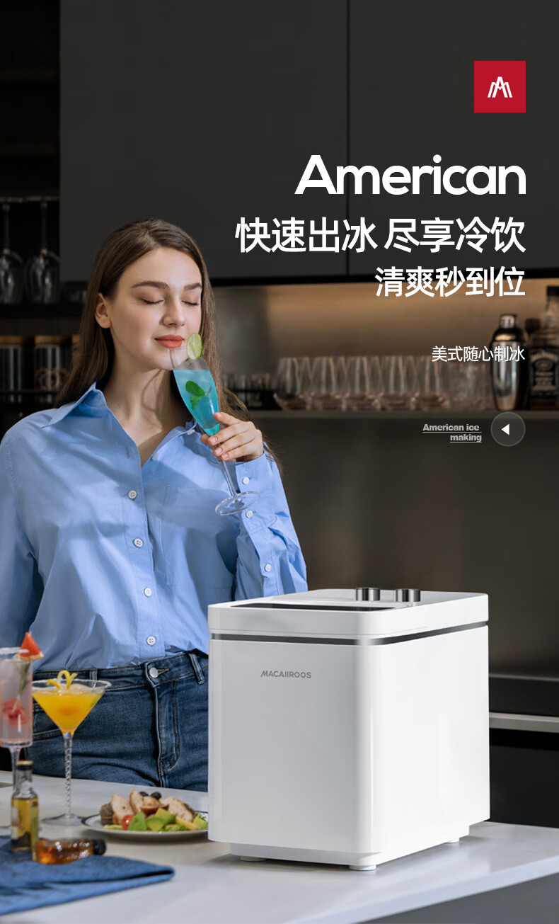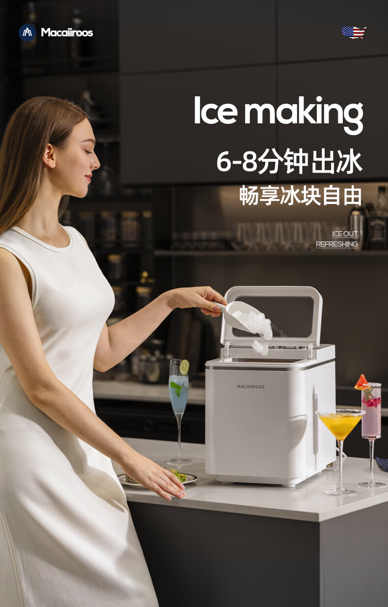 迈卡罗 (MACAIIROOS)制冰机家用小型迷你寝室全自动商用吧台奶茶店冰块机 MCB-130