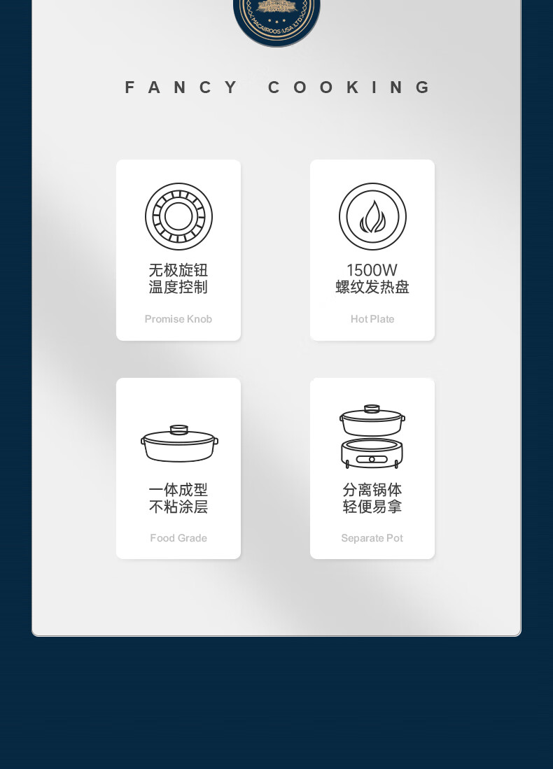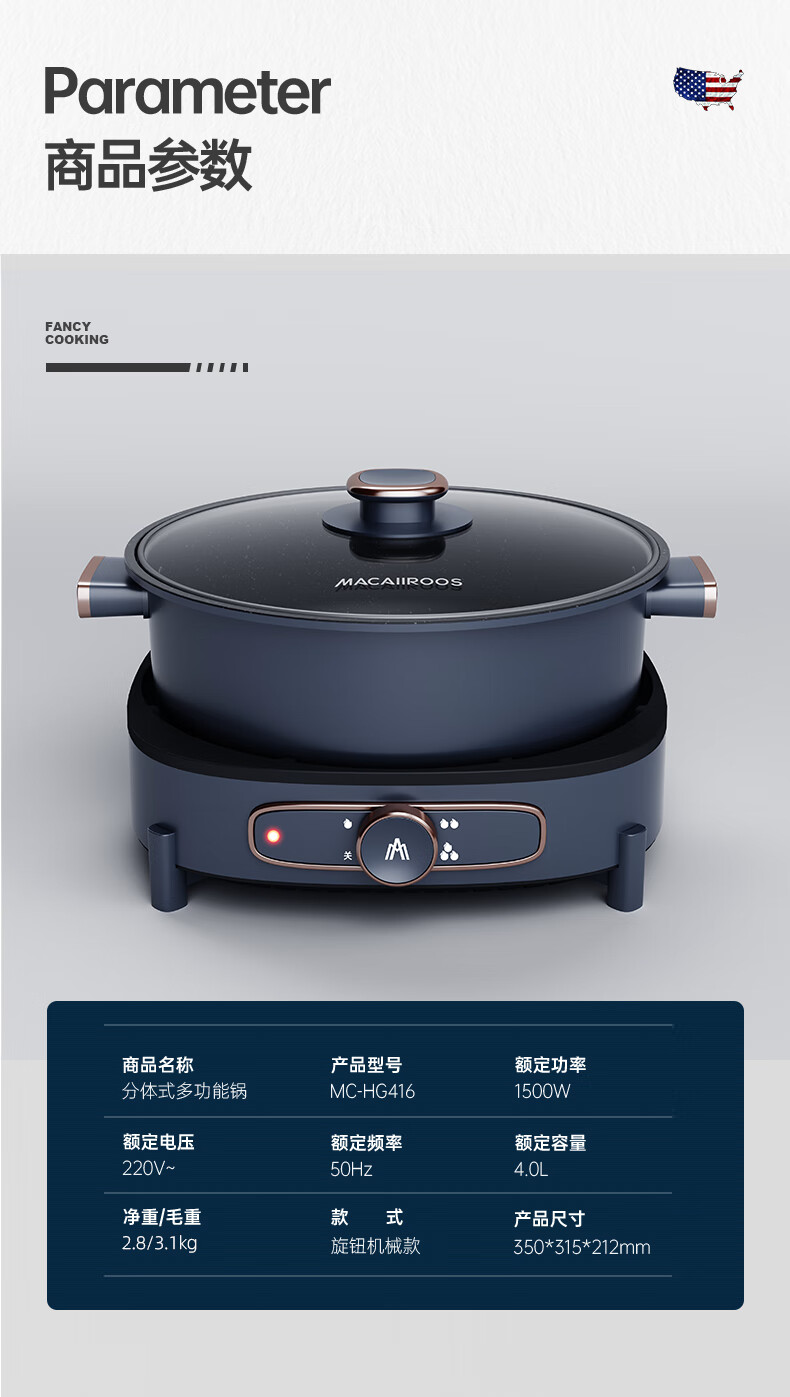 商品名称:迈卡罗 电火锅 电炒锅 电煮锅 多用途锅分体式火锅锅家用 MC-HG416