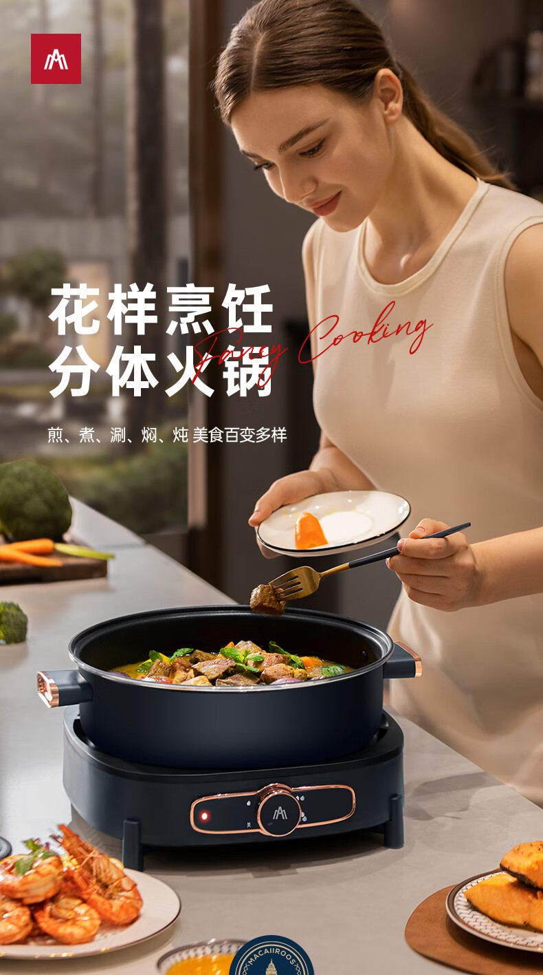 迈卡罗 电火锅 电炒锅 电煮锅 多用途锅分体式火锅锅家用 MC-HG416
