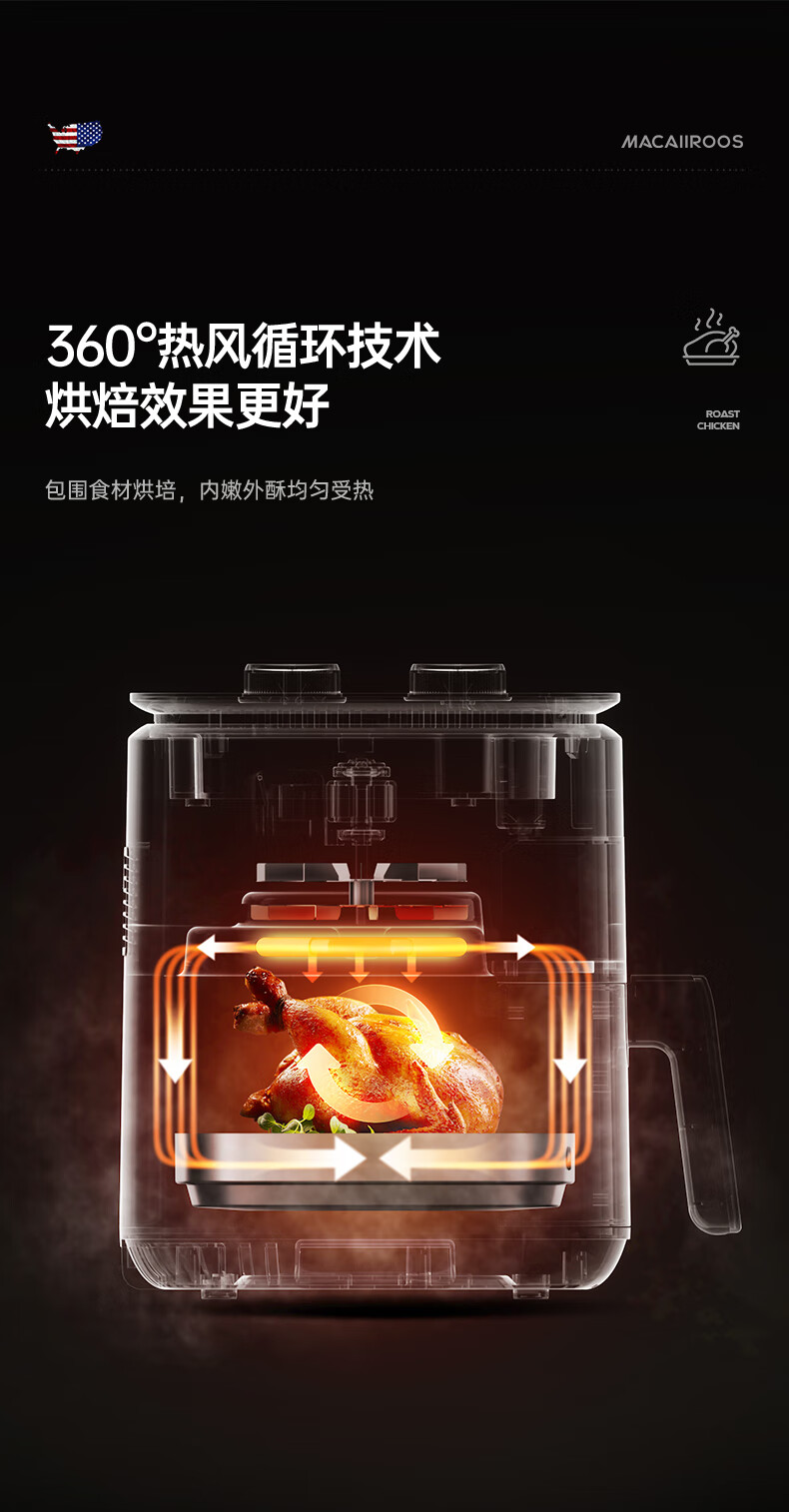 迈卡罗 空气炸锅 无油烟电炸锅家用多功能大功率 大容量 烤箱薯条机 MC-KL476