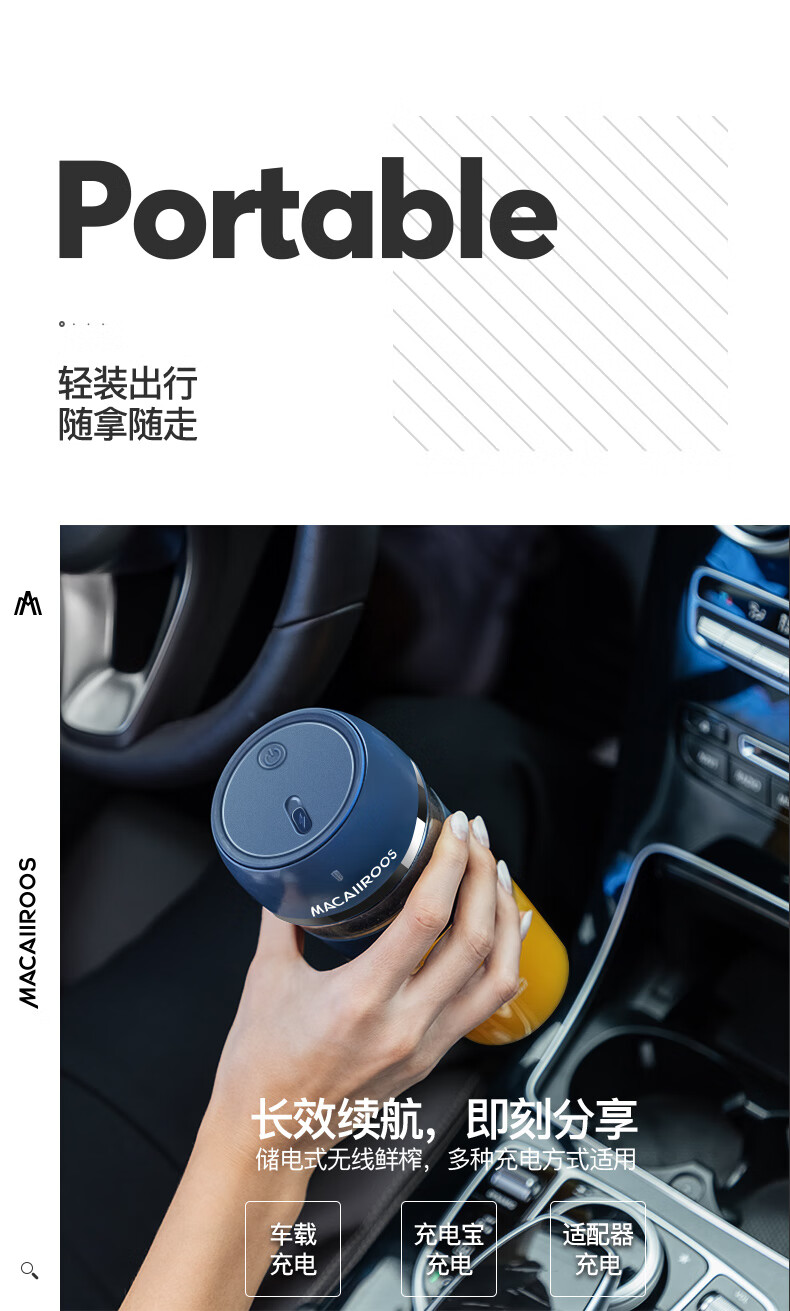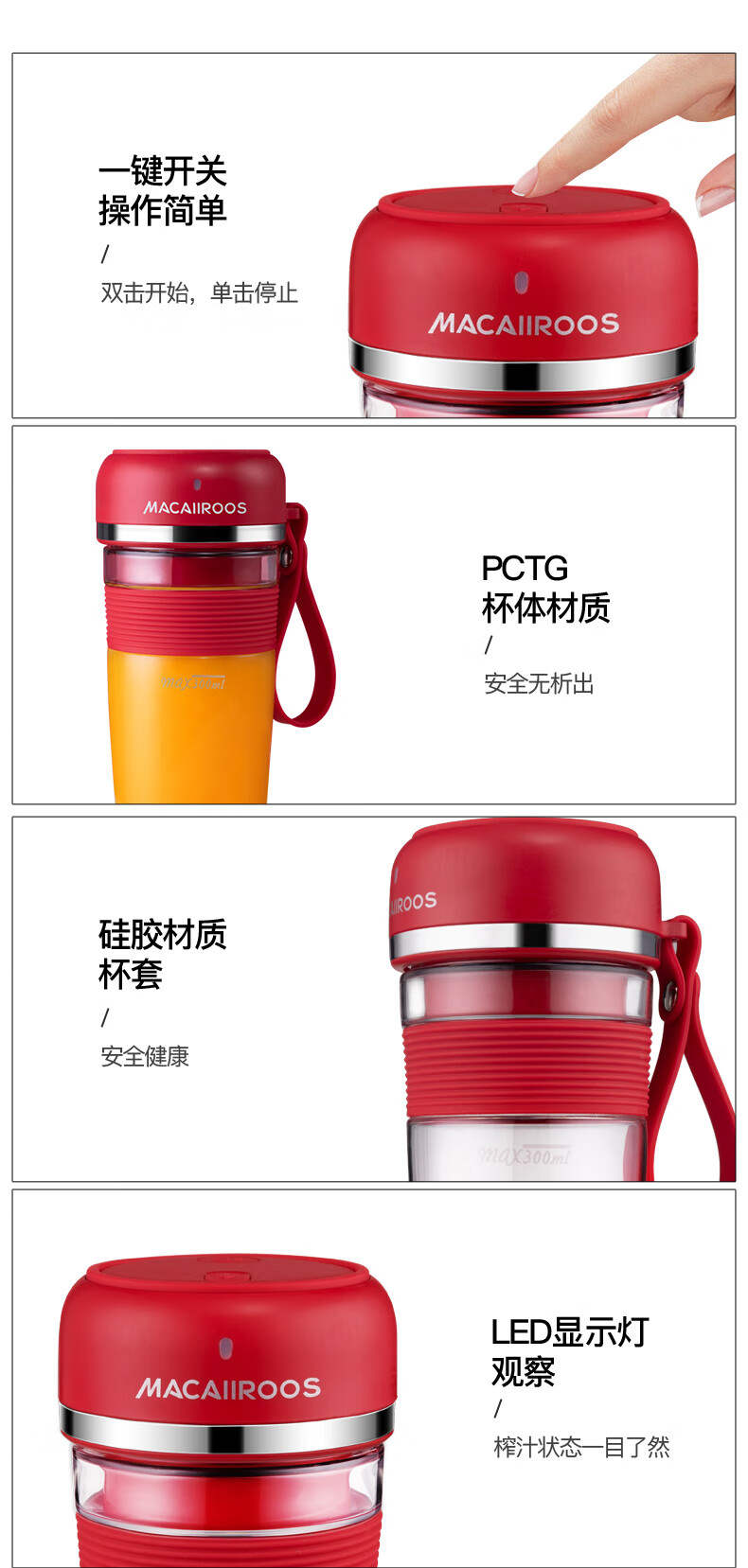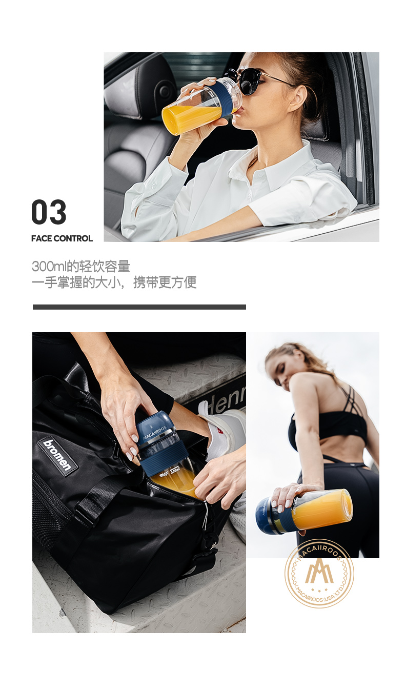 商品名称:迈卡罗 (MACAIIROOS)榨汁机迷你便携式榨汁杯家用电动小型炸果汁机网红无线随身行充电鲜榨 MC-GZ301