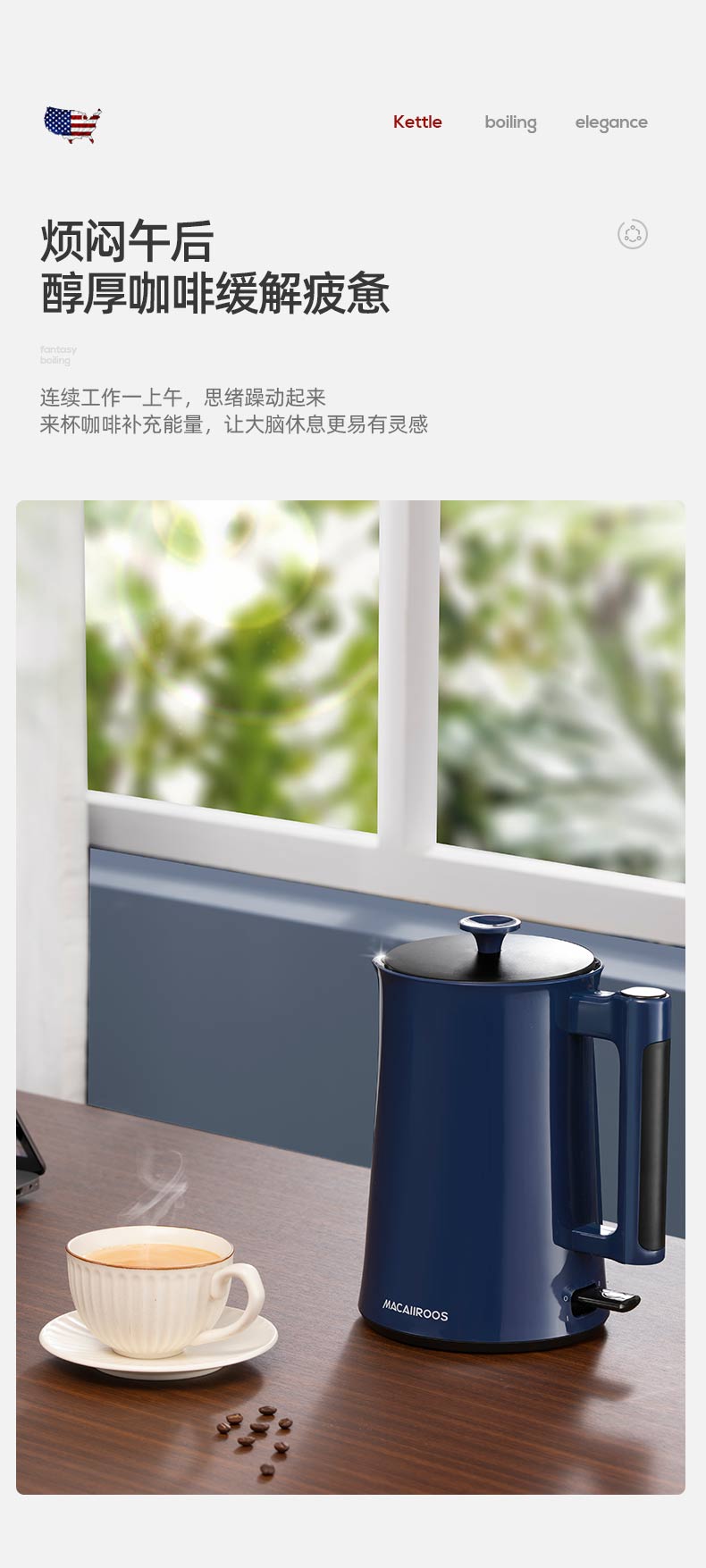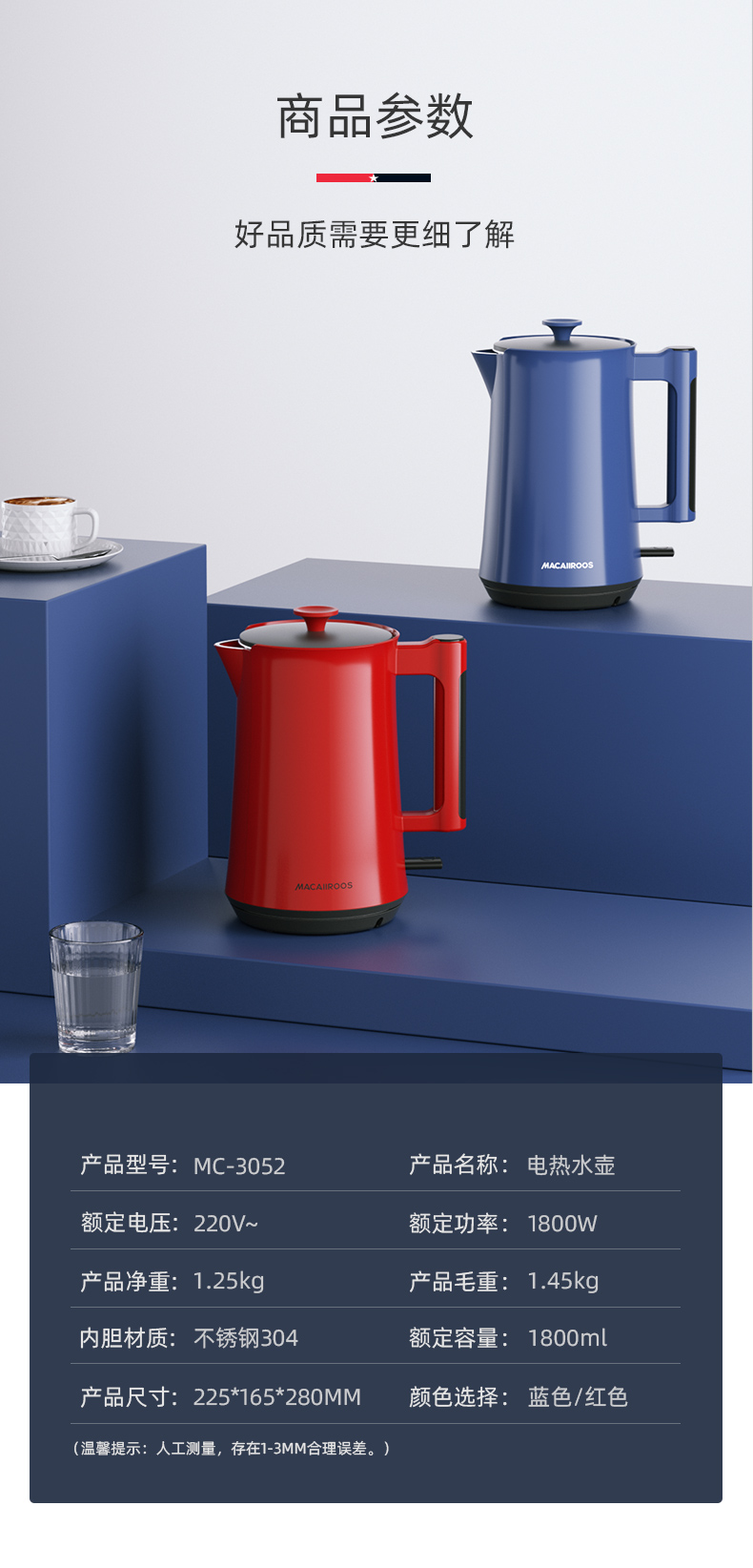 商品名称:迈卡罗 (MACAIIROOS)恒温电热水壶 家用电水壶烧水壶保温一体壶 智能温控304不锈钢开水壶 MC-3052(蓝色)