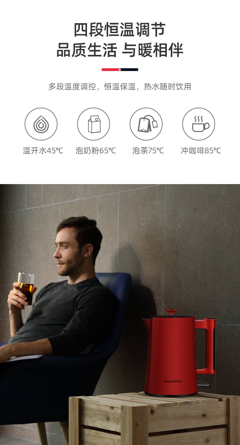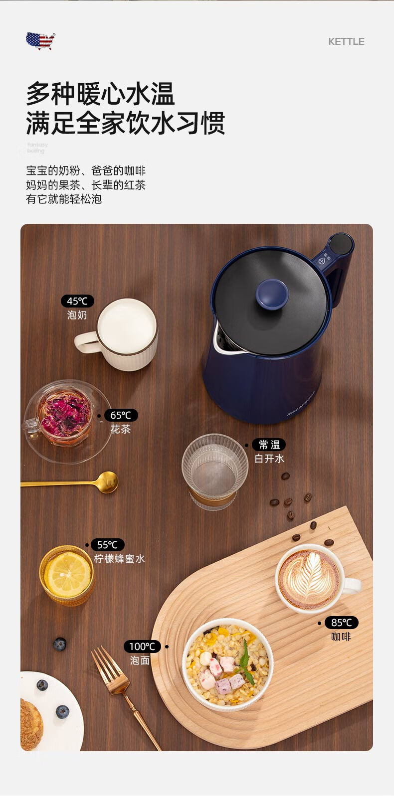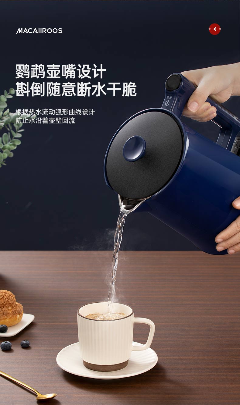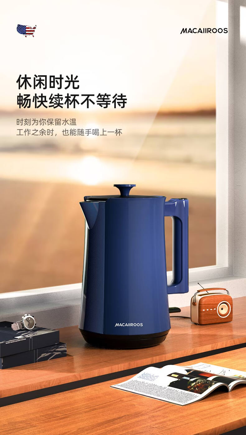 迈卡罗 (MACAIIROOS)恒温电热水壶 家用电水壶烧水壶保温一体壶 智能温控304不锈钢开水壶 MC-3052(蓝色)