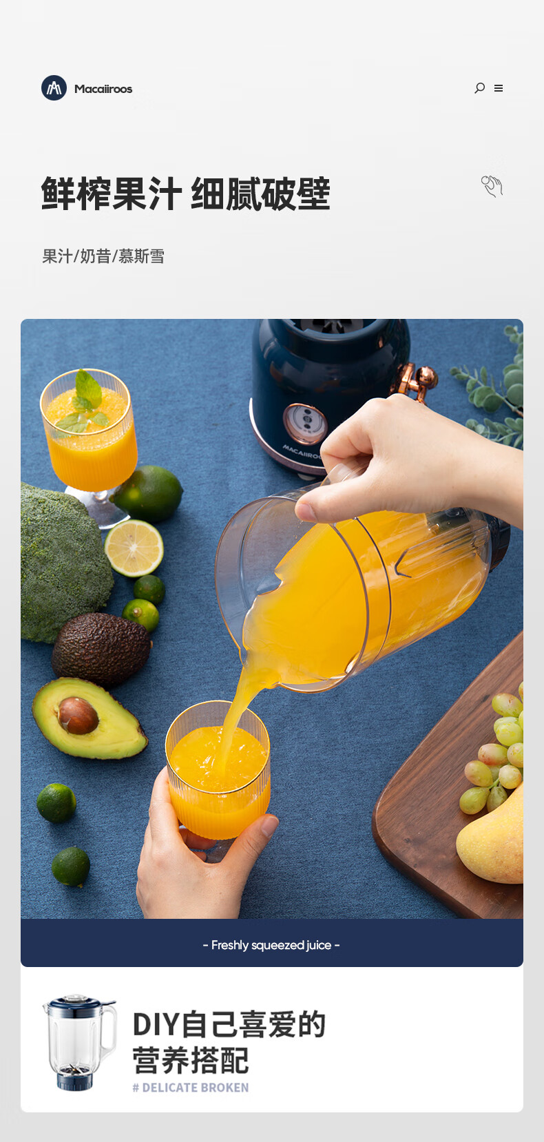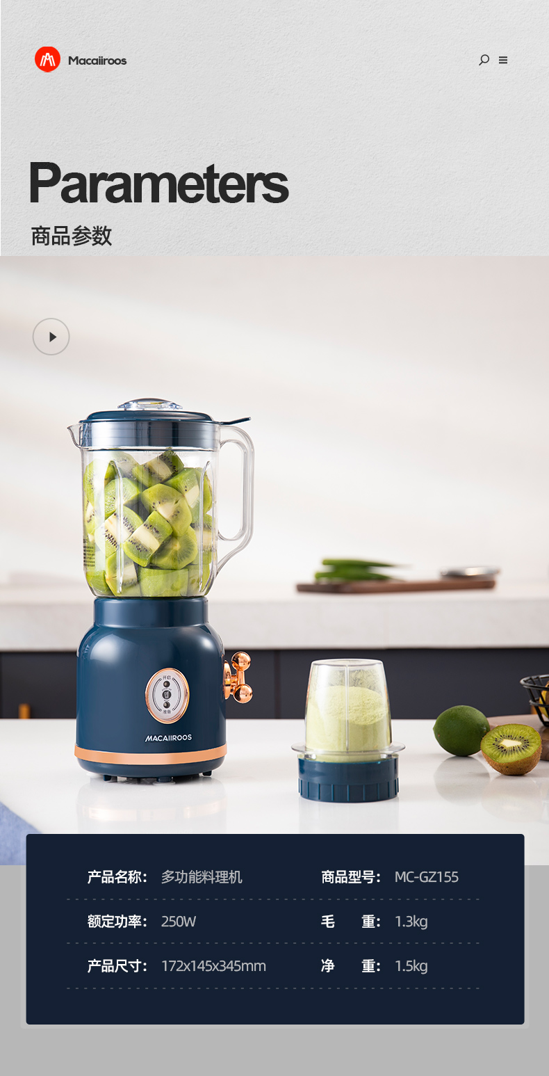 商品名称:迈卡罗 (MACAIIROOS)料理机家用多功能榨汁机研磨机果汁机 MC-GZ155