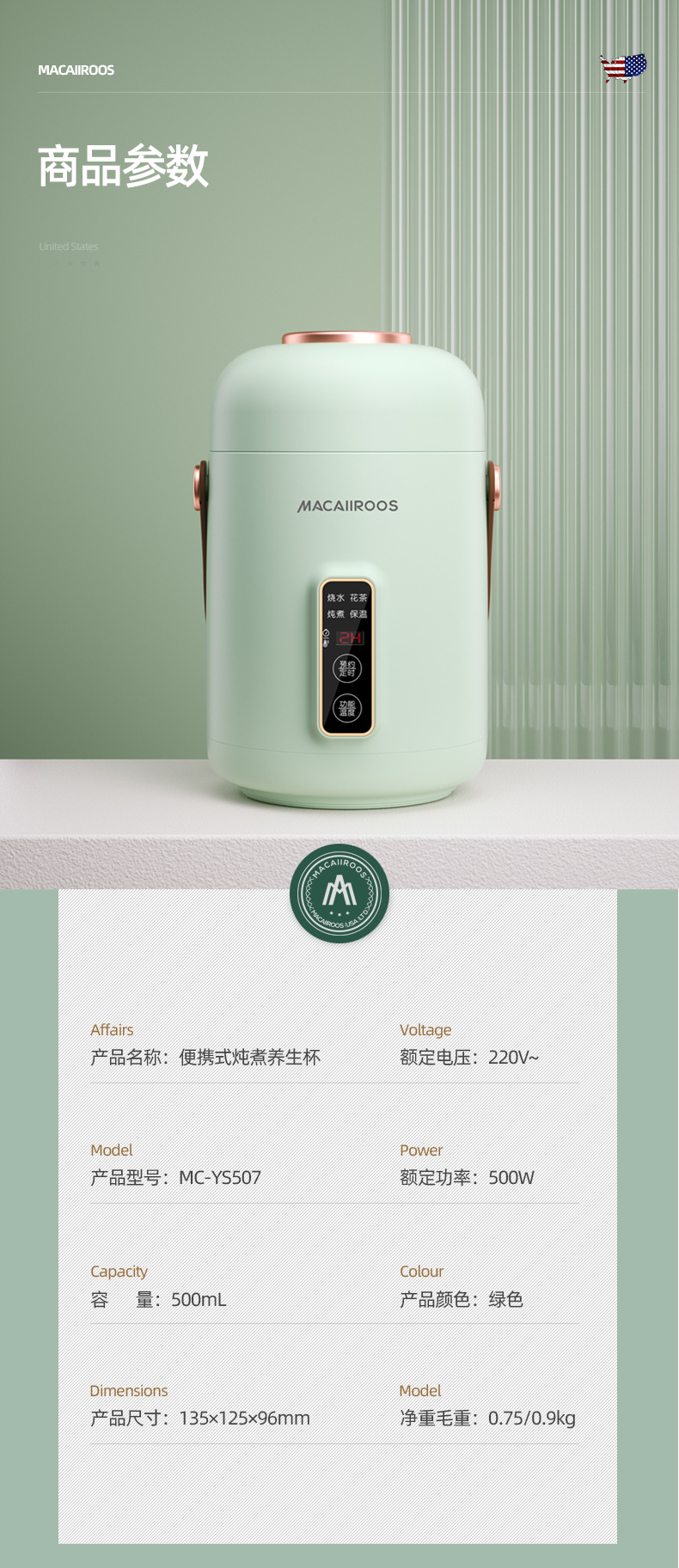 商品名称:迈卡罗 (MACAIIROOS)养生杯迷你电热水杯养生壶 家用旅行便携办公室煮茶器烧水壶 MC-YS507