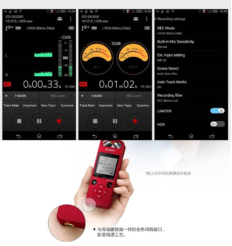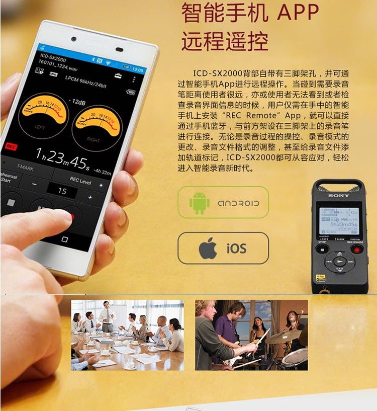 索尼录音笔ICD-SX2000专业高清降噪会议商务学习