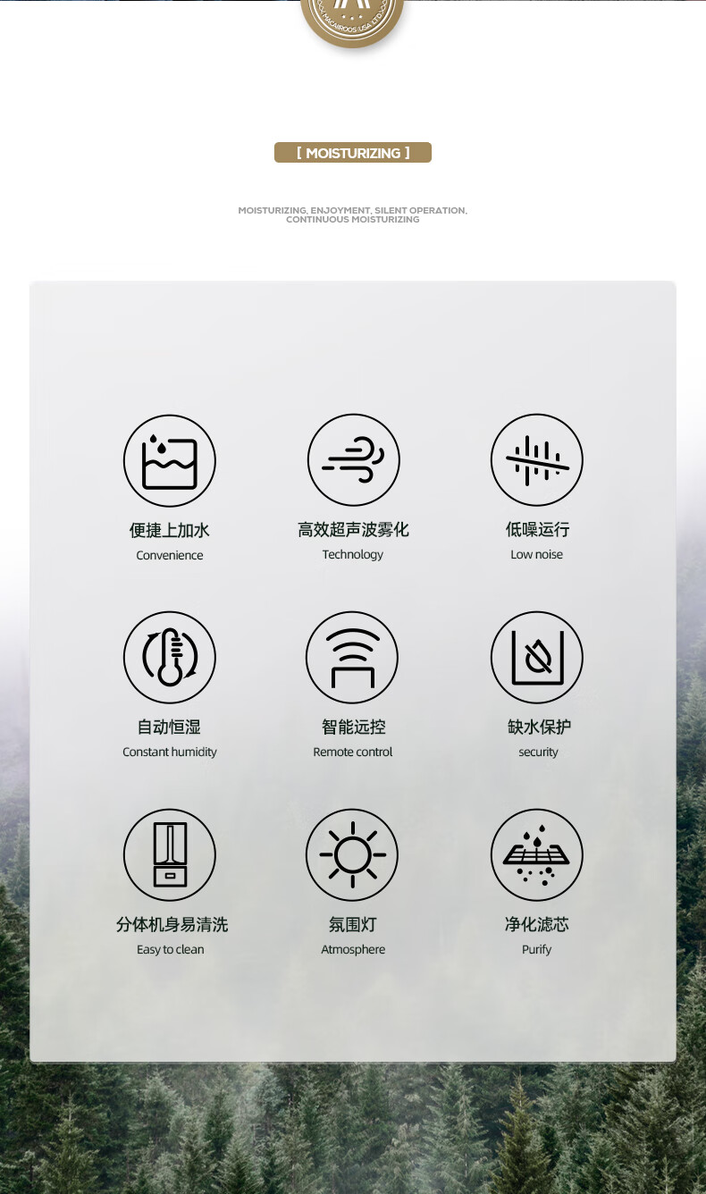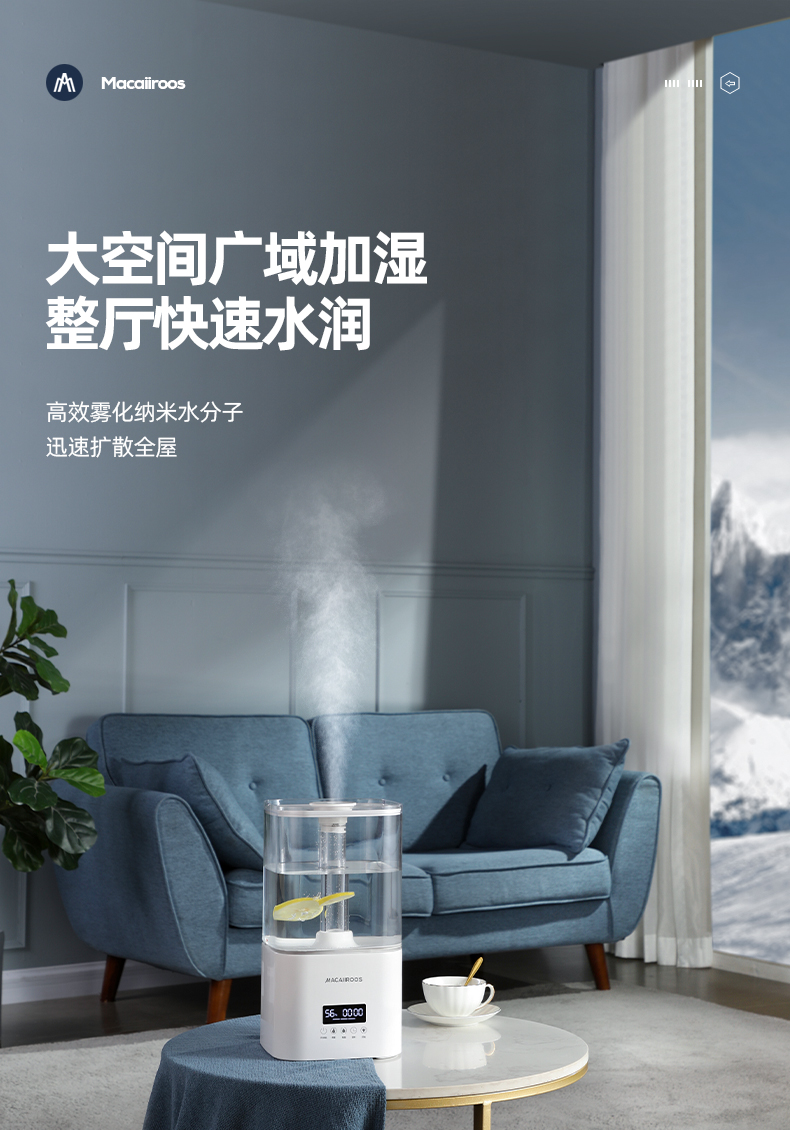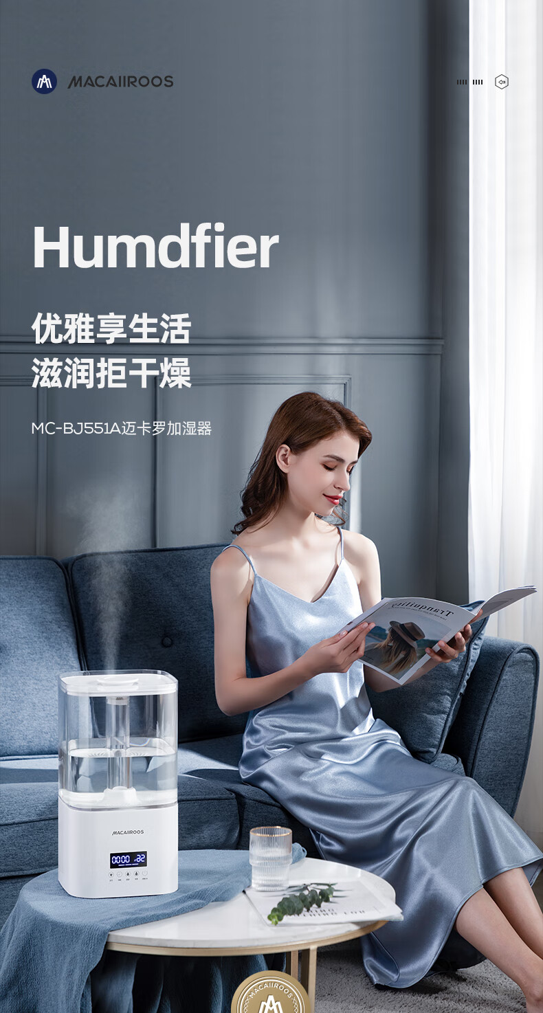 商品名称:迈卡罗 (MACAIIROOS)空气加湿器卧室家用办公室桌面大雾量客厅婴儿上加水5.5L大容量恒湿 智能版(MC-BJ551A)