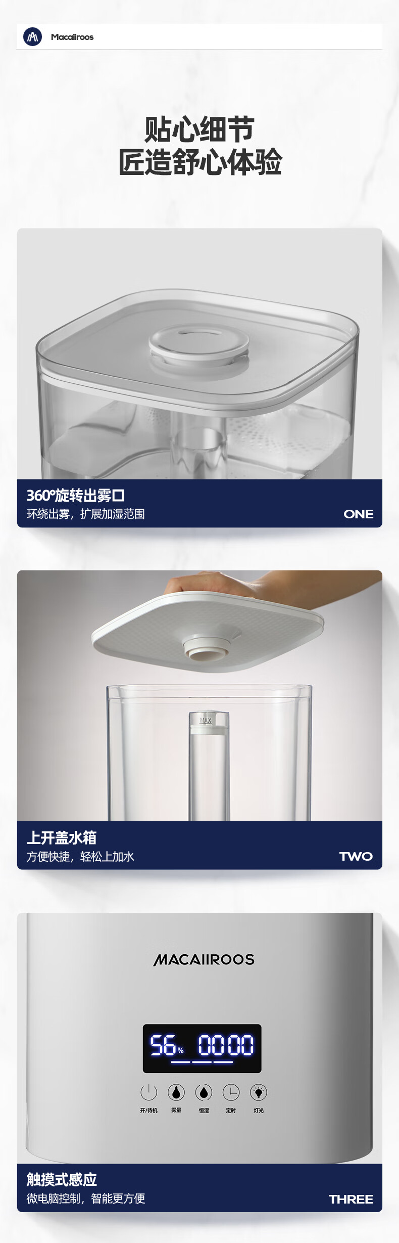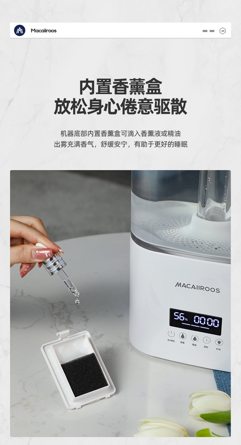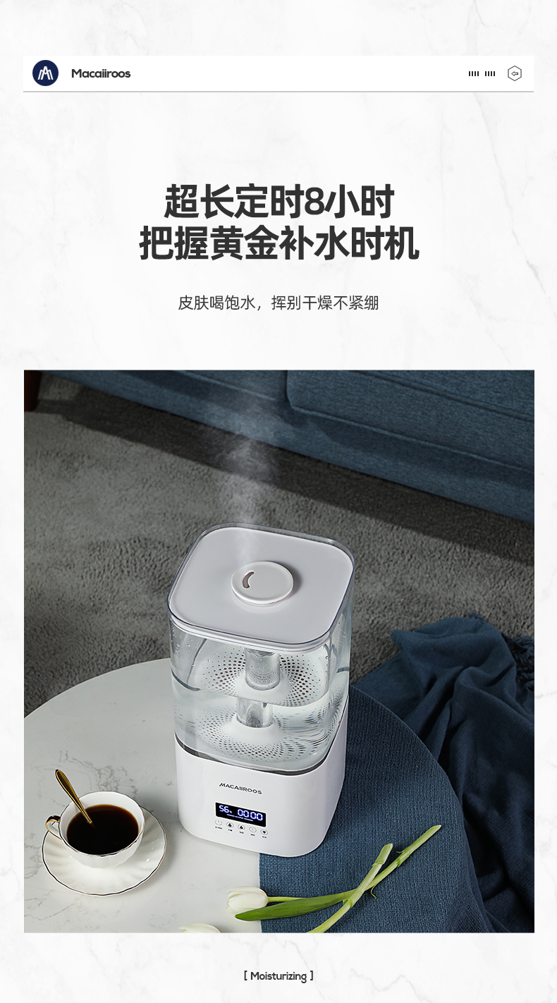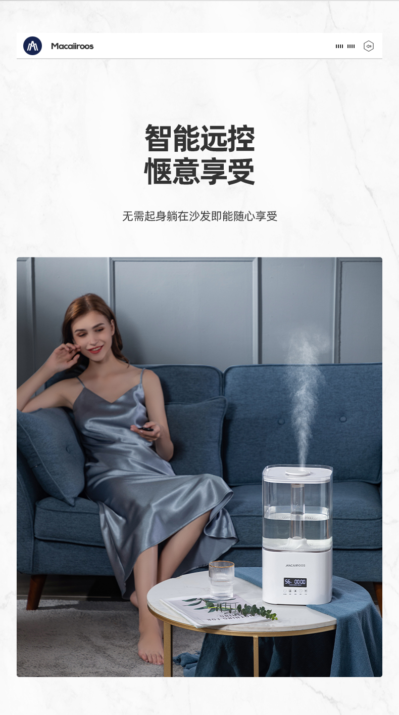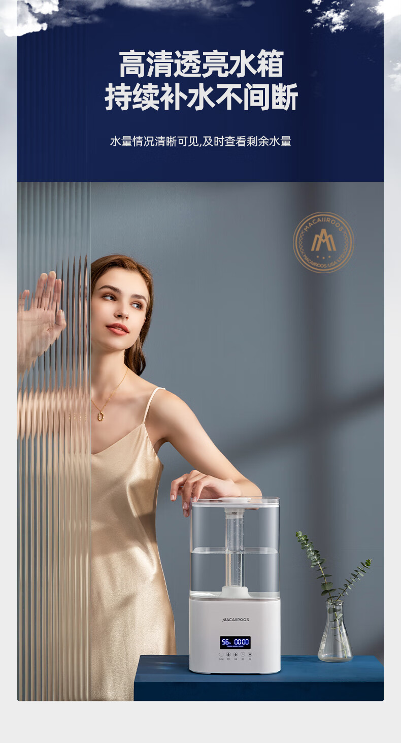 迈卡罗 (MACAIIROOS)空气加湿器卧室家用办公室桌面大雾量客厅婴儿上加水5.5L大容量恒湿 智能版(MC-BJ551A)