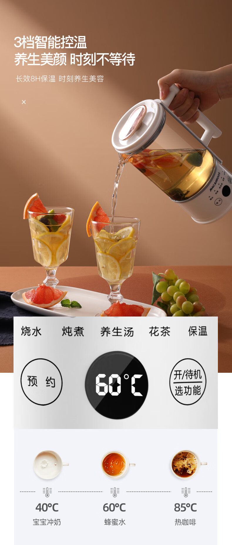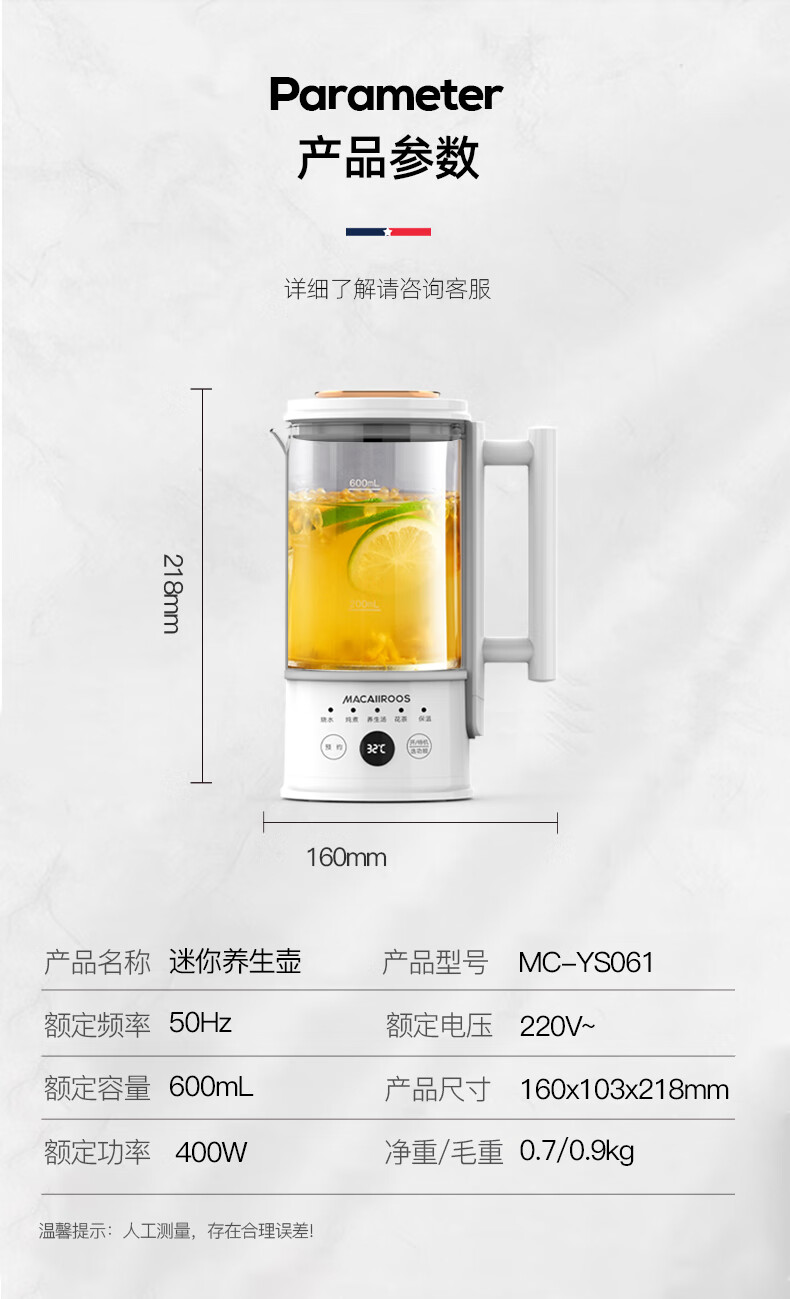 商品名称:迈卡罗 (MACAIIROOS)迷你养生壶 小型花茶壶养生杯便携式煮茶器煮茶壶办公室家用旅行烧水壶 MC-YS061 单位:个