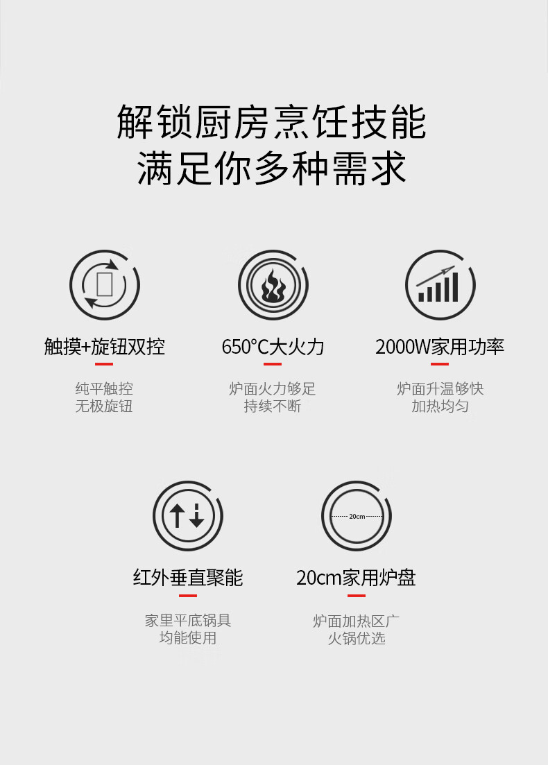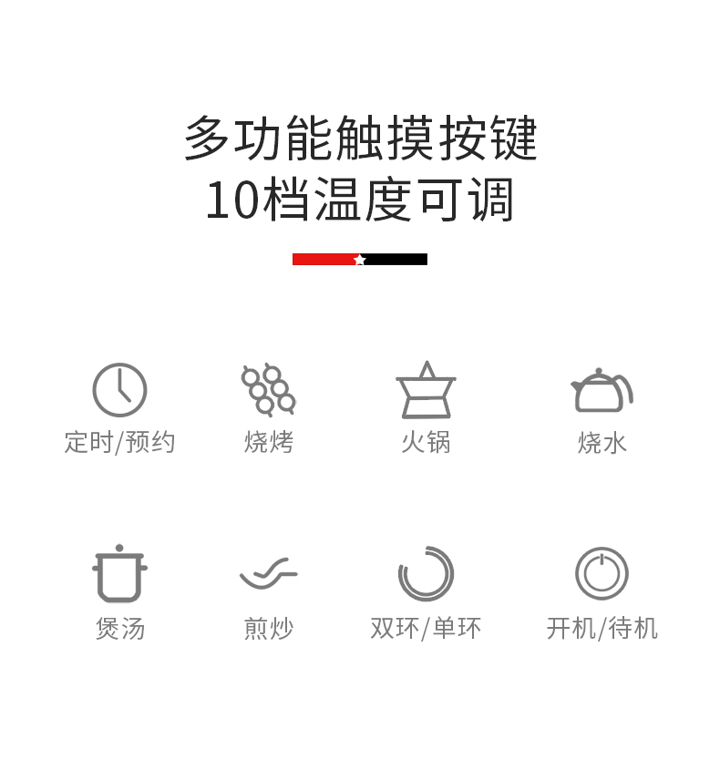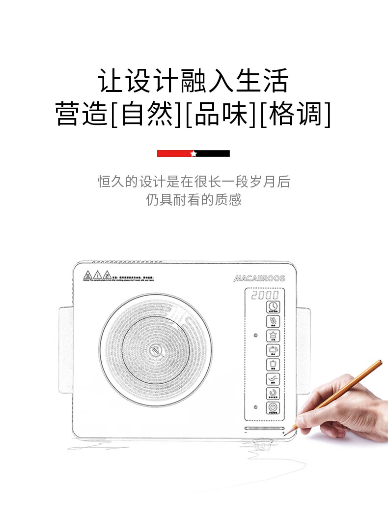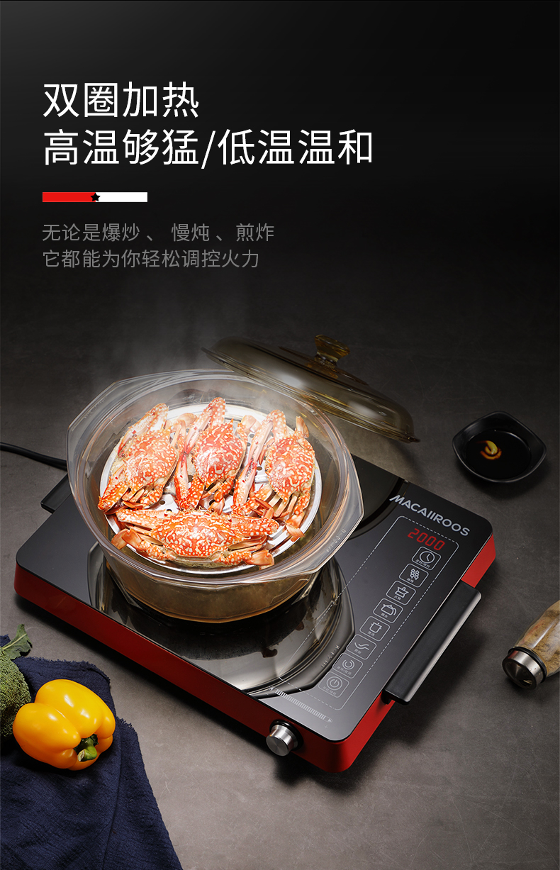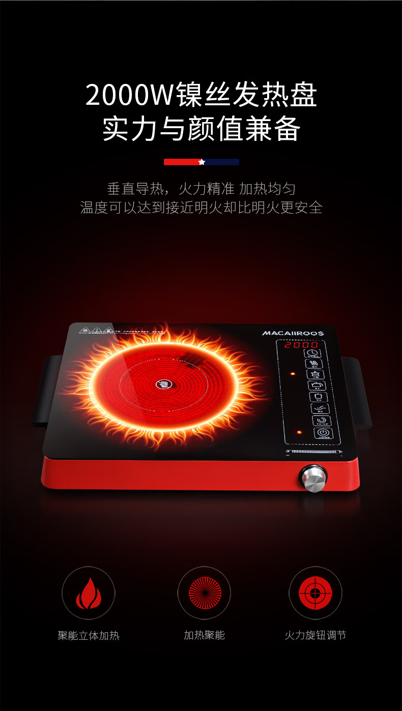 迈卡罗(MACAIIROOS)电陶炉家用红外光波电磁炉多功能台式大功率爆炒烧烤火锅炉茶炉 MC-8151