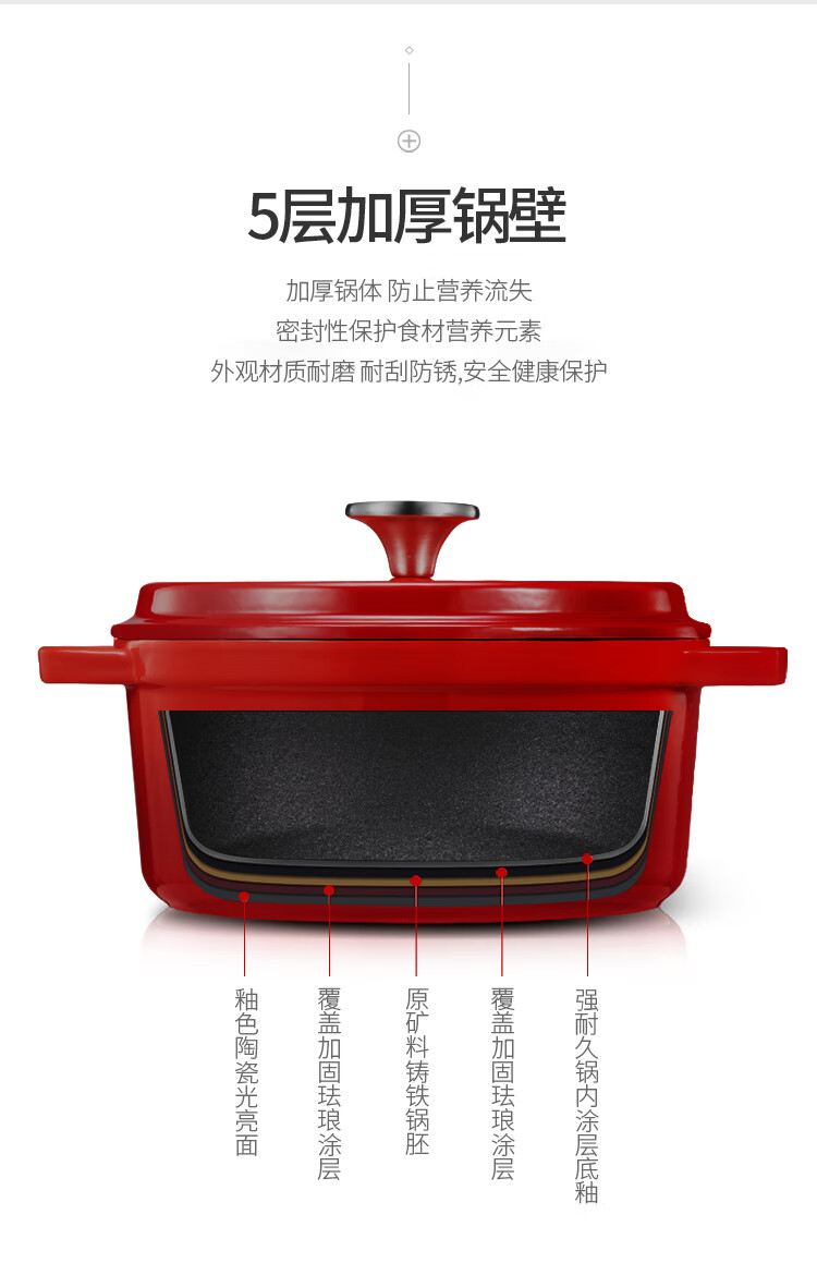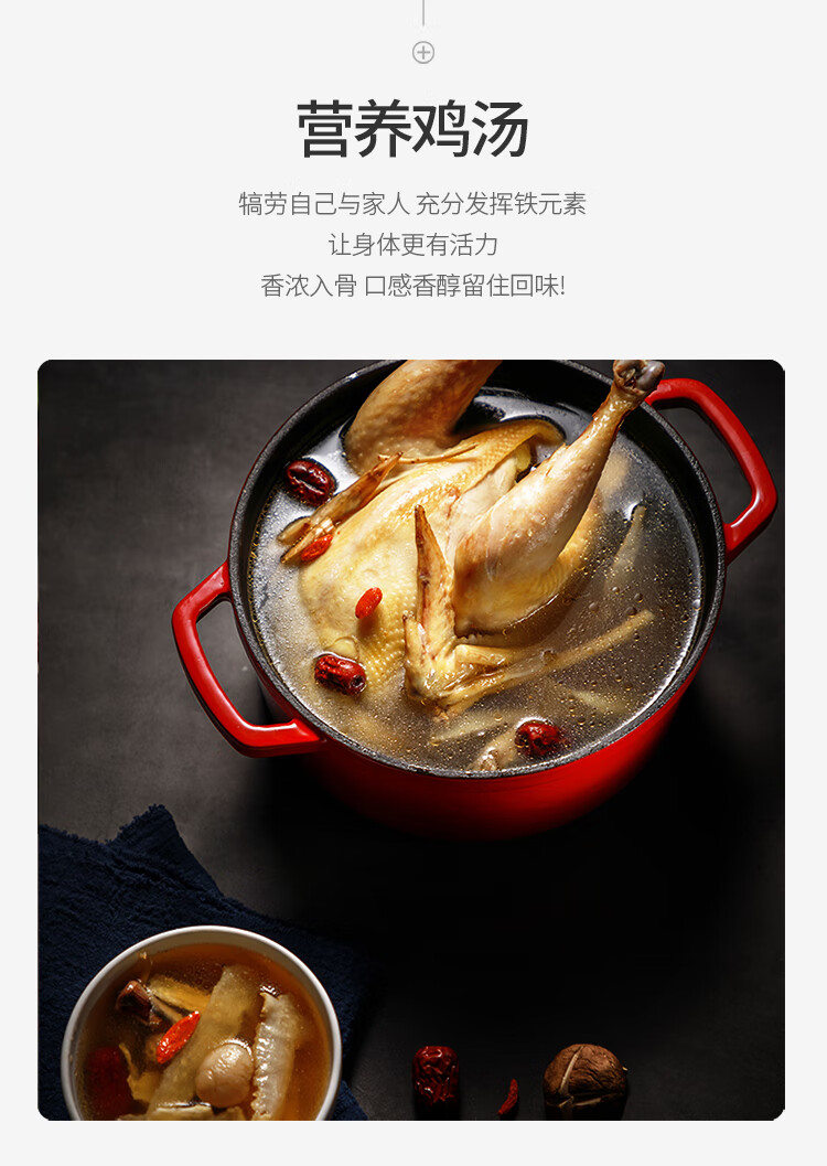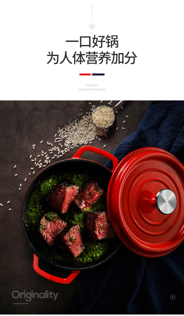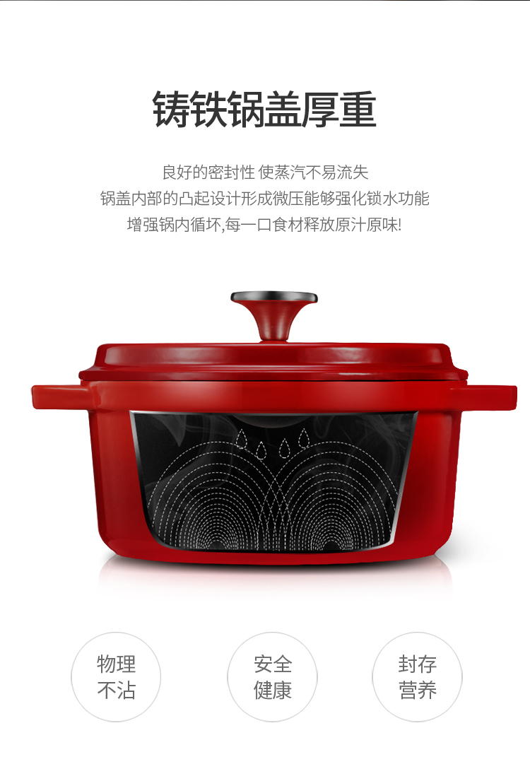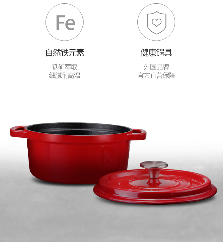 商品名称:迈卡罗 (MACAIIROOS)铸铁珐琅锅 加厚搪瓷锅汤锅炖锅多用锅不粘锅 燃气电磁炉通用 水色红(4L)单位:个