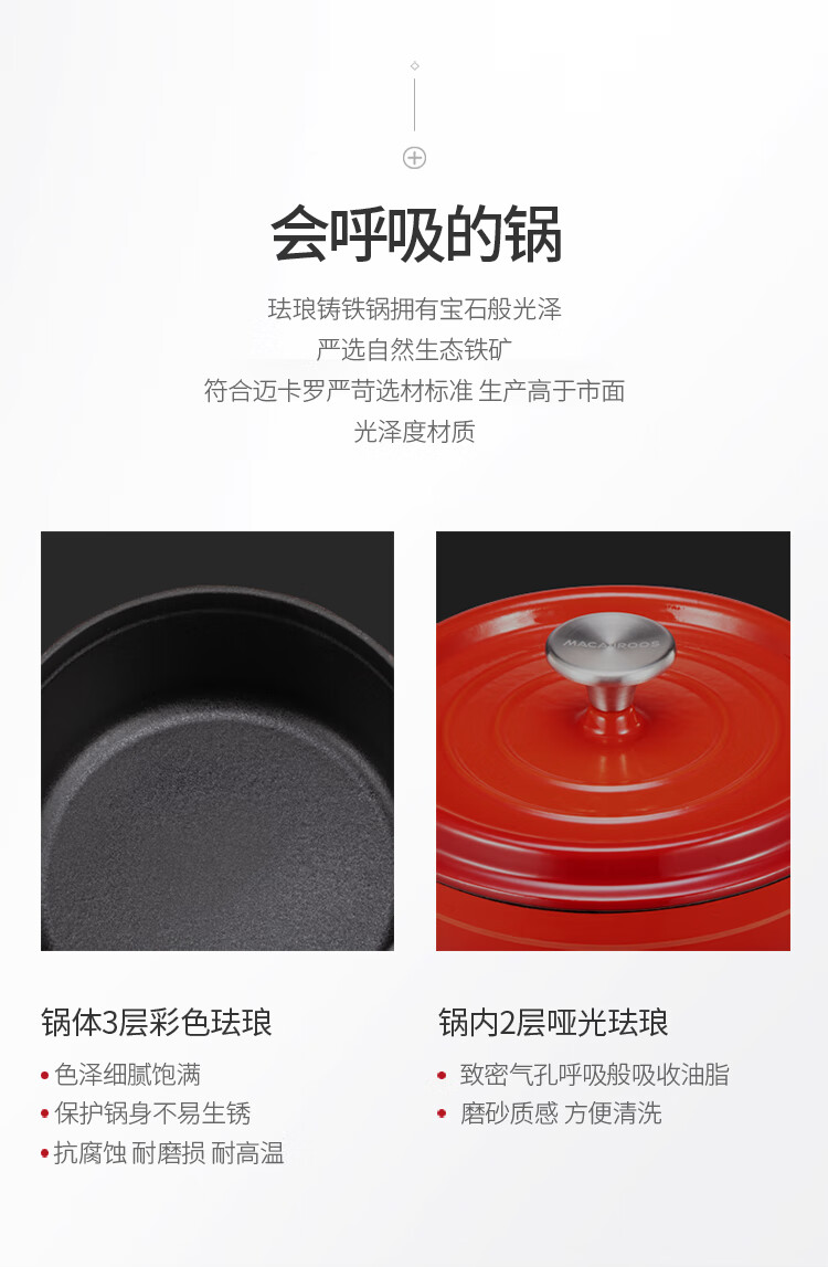 迈卡罗 (MACAIIROOS)铸铁珐琅锅 加厚搪瓷锅汤锅炖锅多用锅不粘锅 燃气电磁炉通用 水色红(4L)单位:个