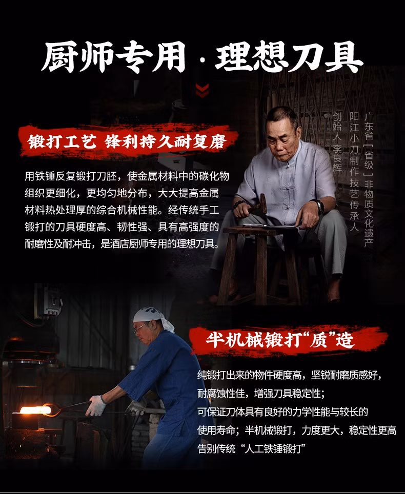 十八子作切菜刀厨房刀具菜刀手工锻打刀桑刀厨师切片阳江十八子刀菜刀S-D2 单位:把