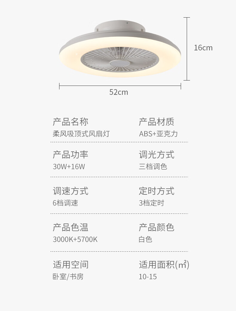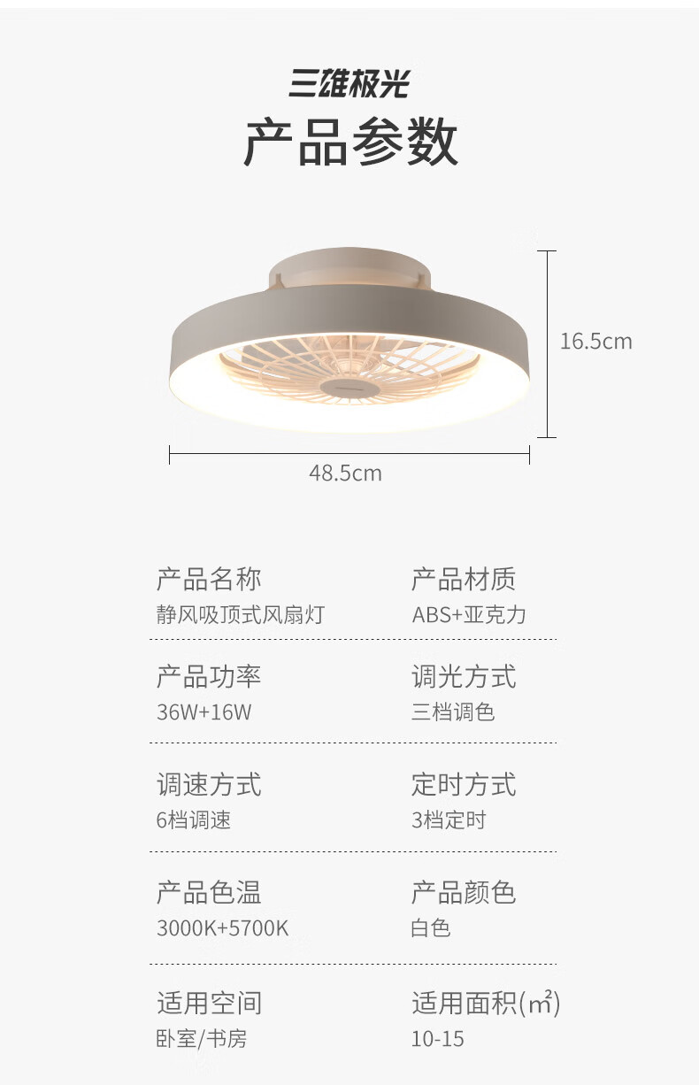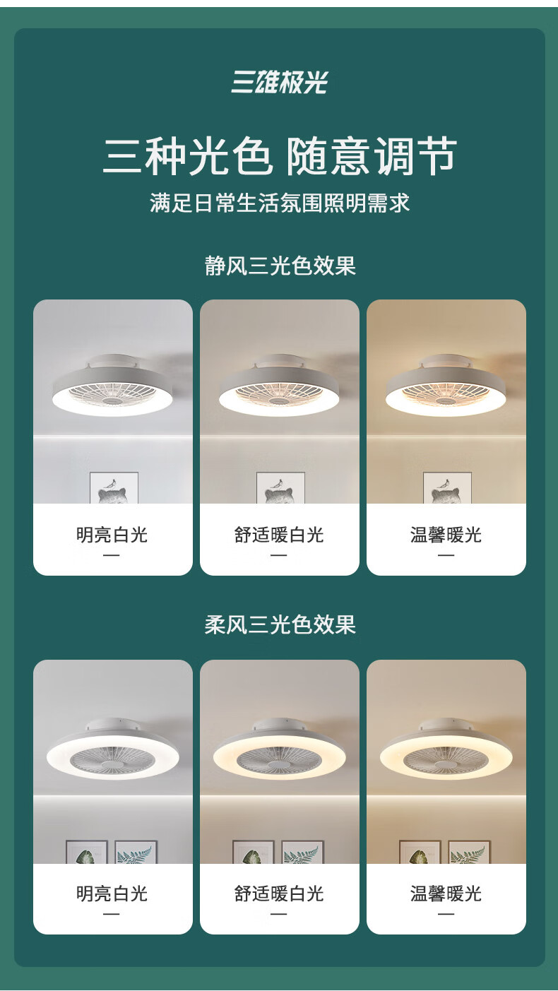 商品名称:三雄极光 LED风扇灯隐形吊扇灯餐厅风扇客厅现代灯具 静风 吸顶式风扇灯 三段调光 6档 单位:套