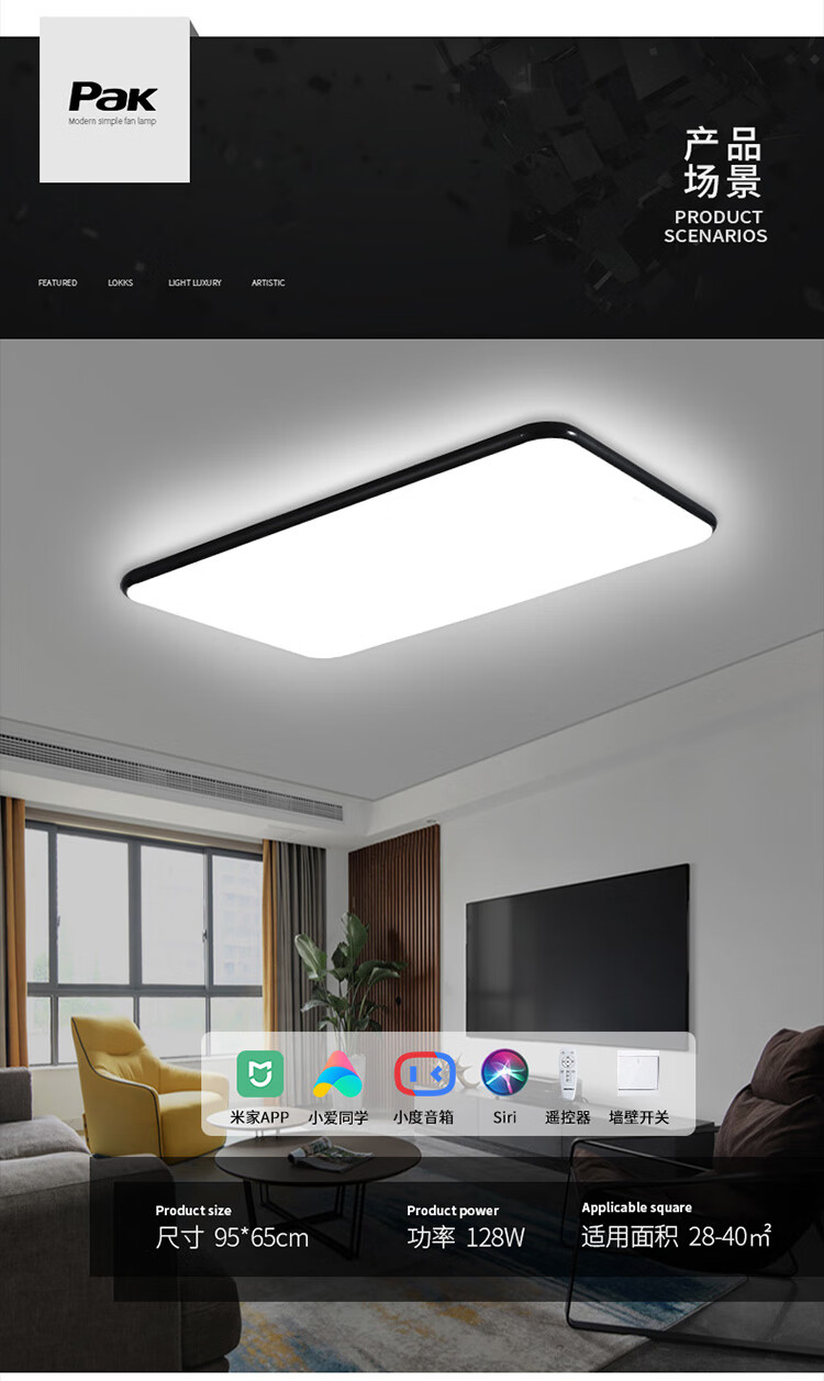 商品名称:三雄极光led吸顶灯语音智控客厅餐厅灯现代简约【星洁】128W智控调光调色 单位:套