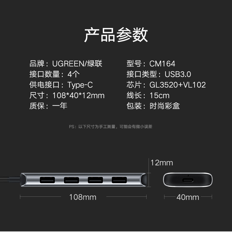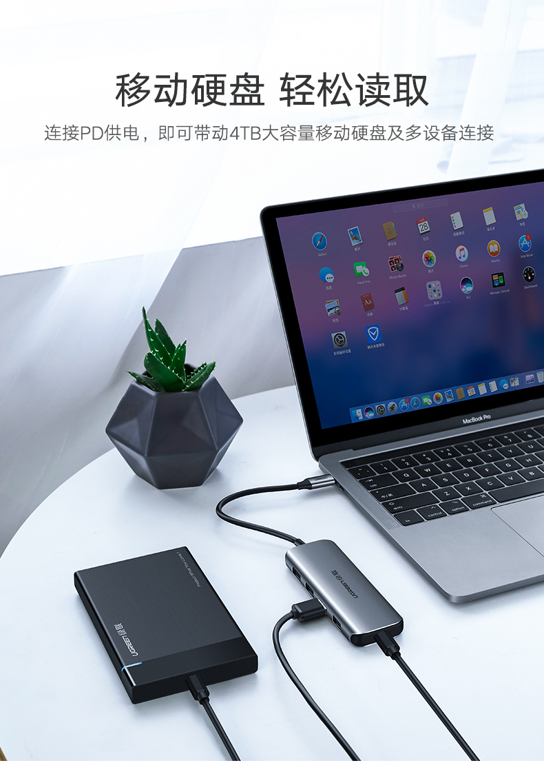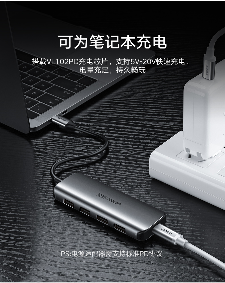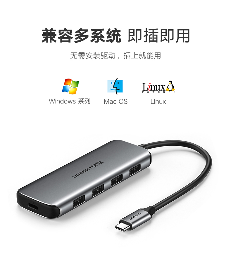 商品名称:绿联 usb-c分线器一拖四高速3.0转换type-c笔记本电脑扩展坞集线器
