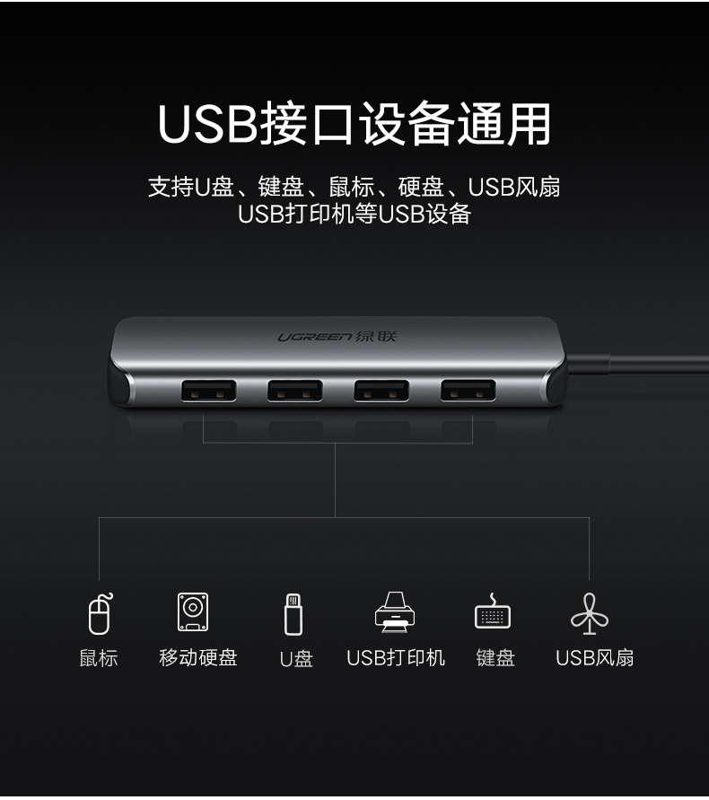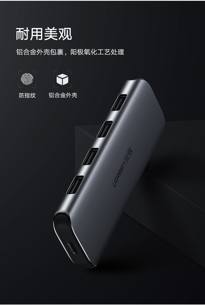 绿联 usb-c分线器一拖四高速3.0转换type-c笔记本电脑扩展坞集线器