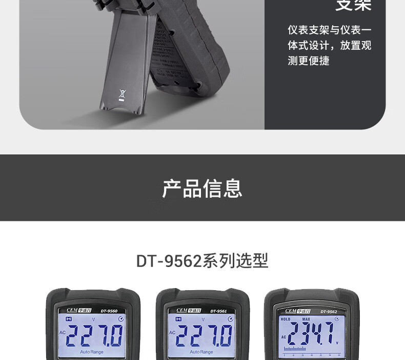 商品名称:华盛昌(CEM)DT-9560 数字万用表 智能防烧电工表 高精度电流表 真有效值工业级万能表 单位:台