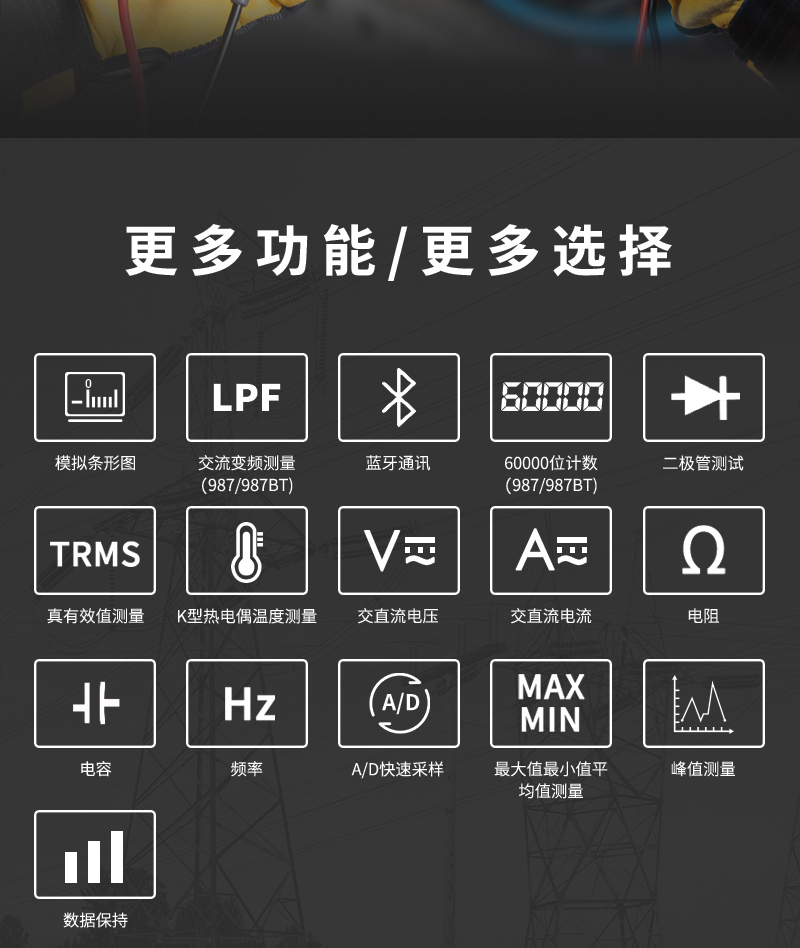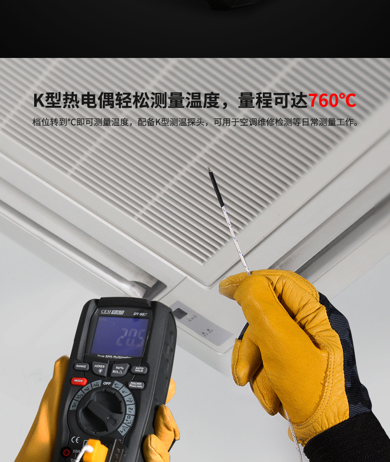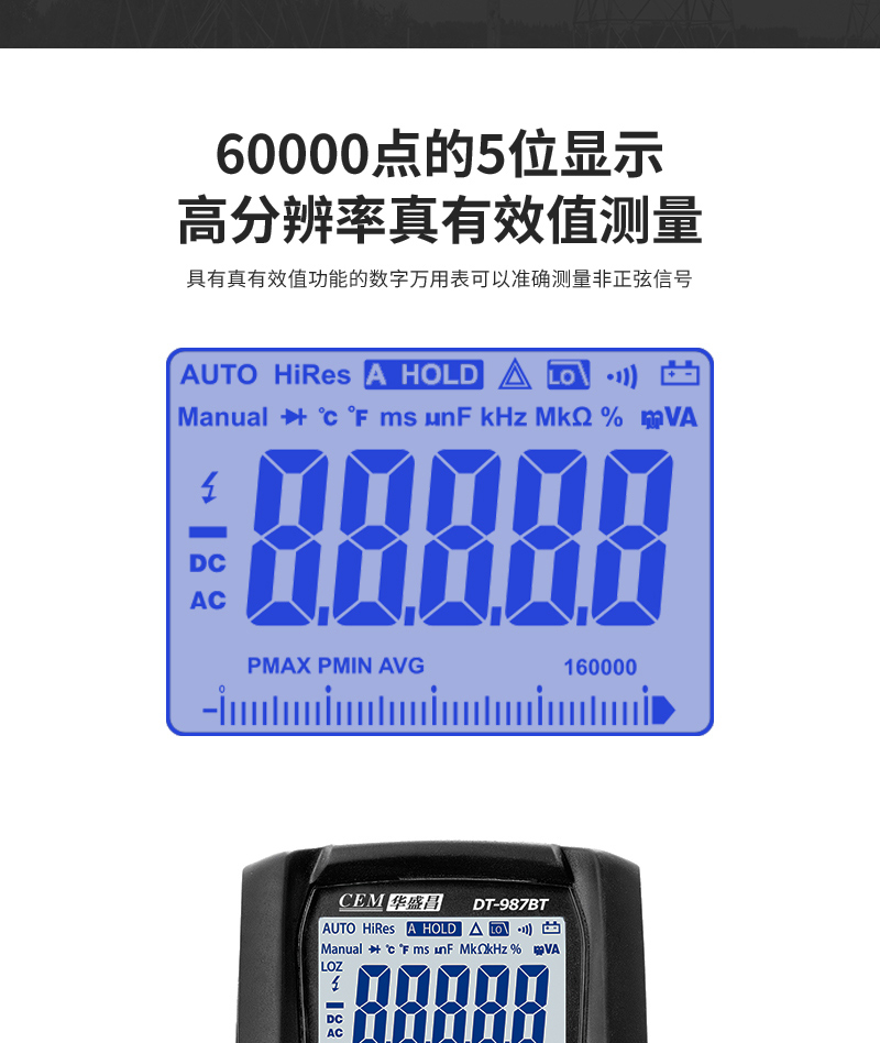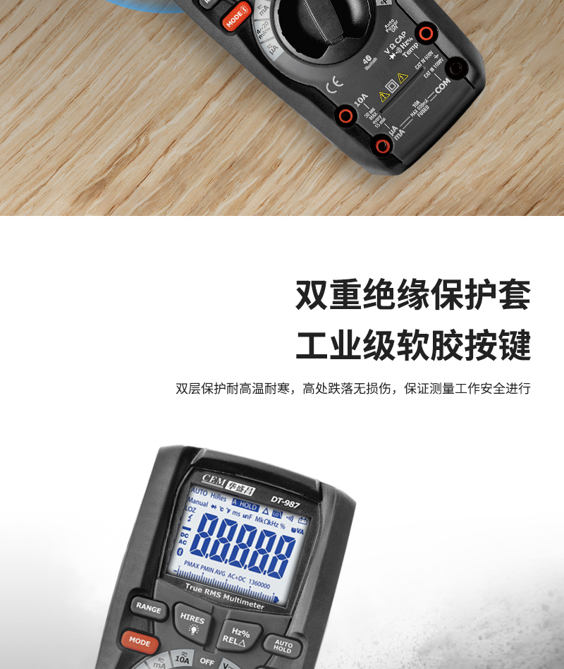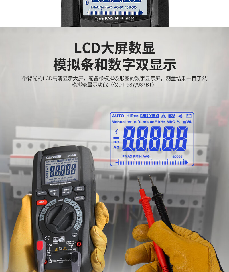华盛昌(CEM)DT-987 数字万用表 智能防烧电工表 高精度电流表 真有效值工业级万能表 单位:台