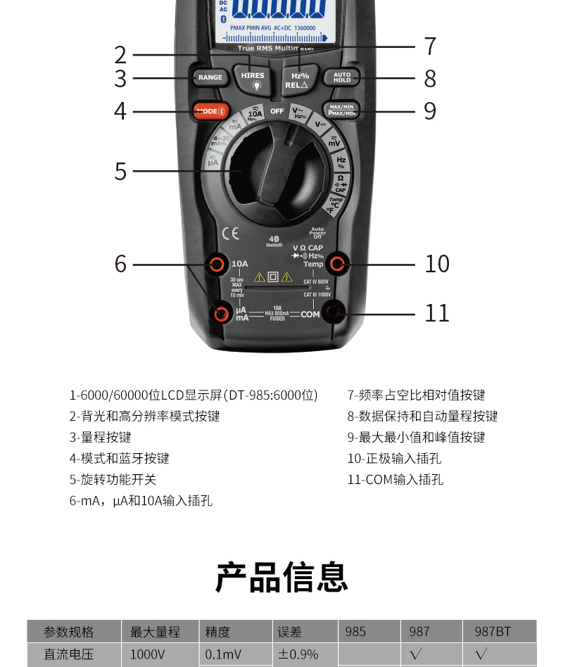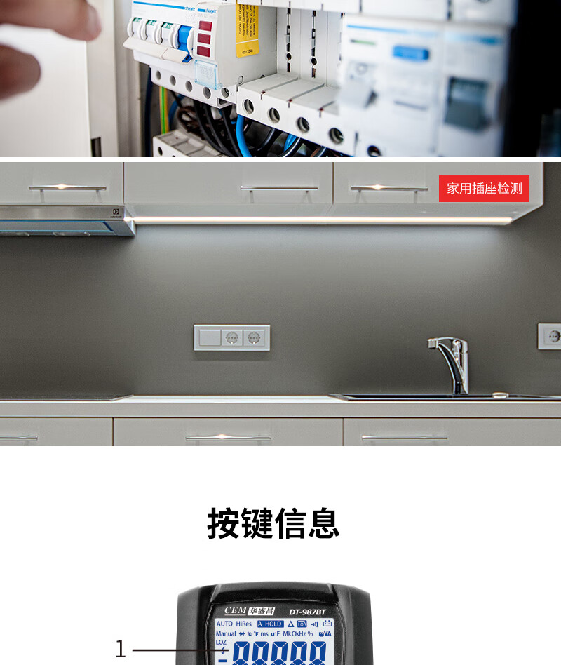 商品名称:华盛昌(CEM)DT-987 数字万用表 智能防烧电工表 高精度电流表 真有效值工业级万能表 单位:台