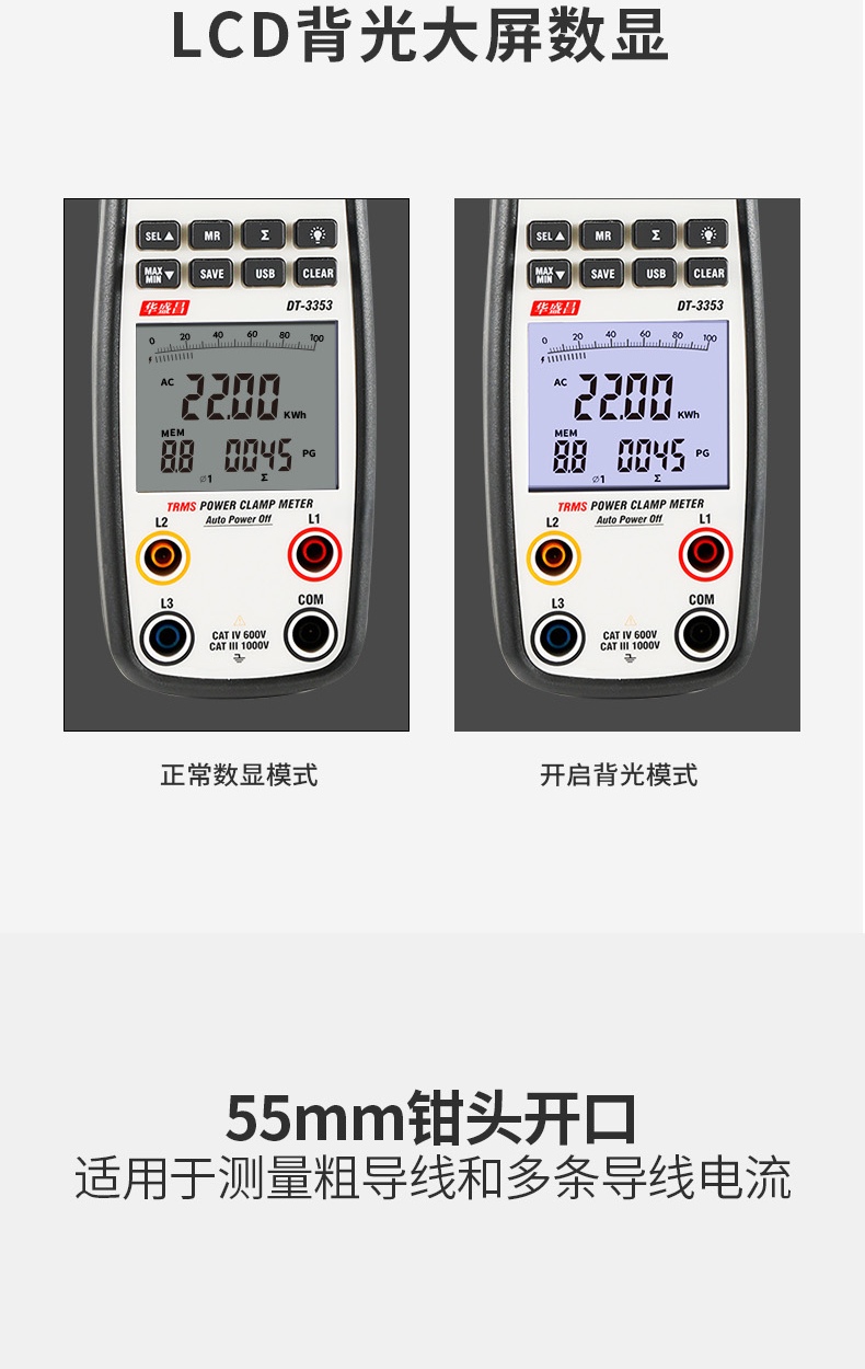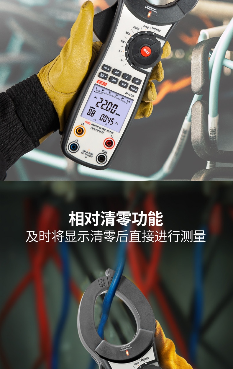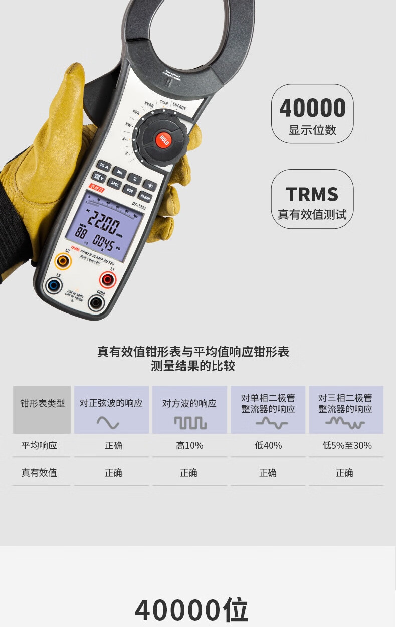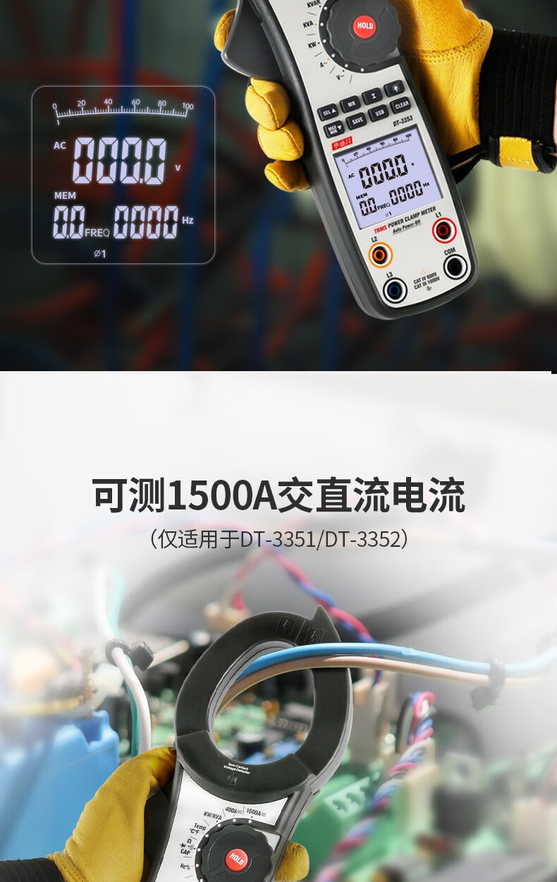 商品名称:华盛昌(CEM)DT-3353数字钳形表高精度真有效值电流表全自动数显交流大电流电流表功率表 单位:台