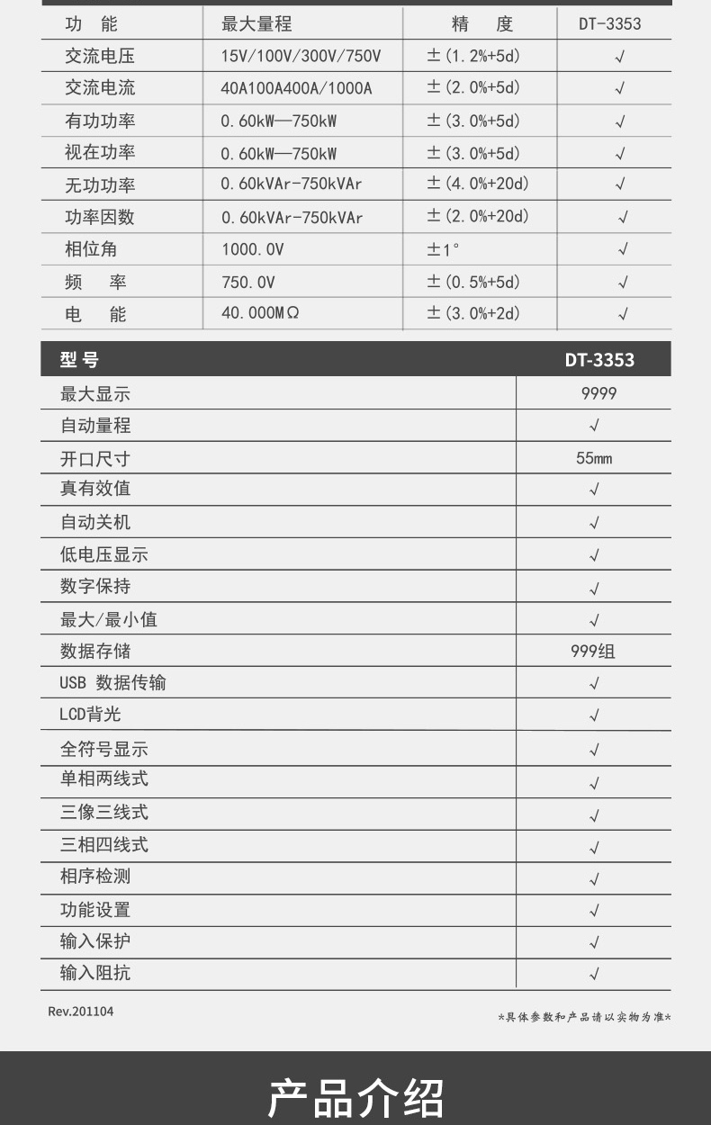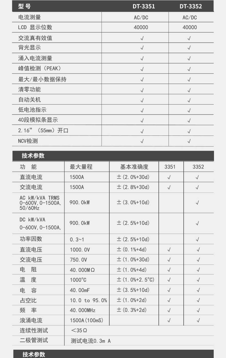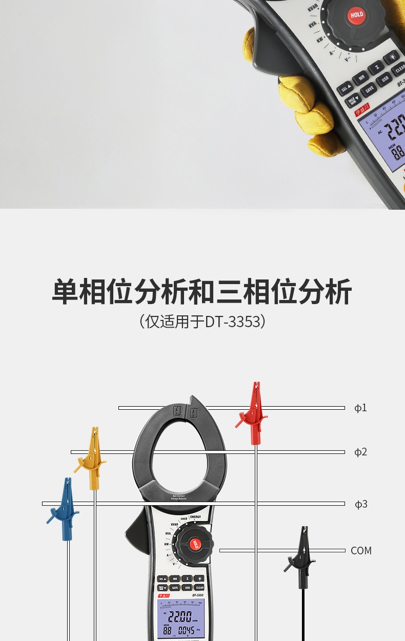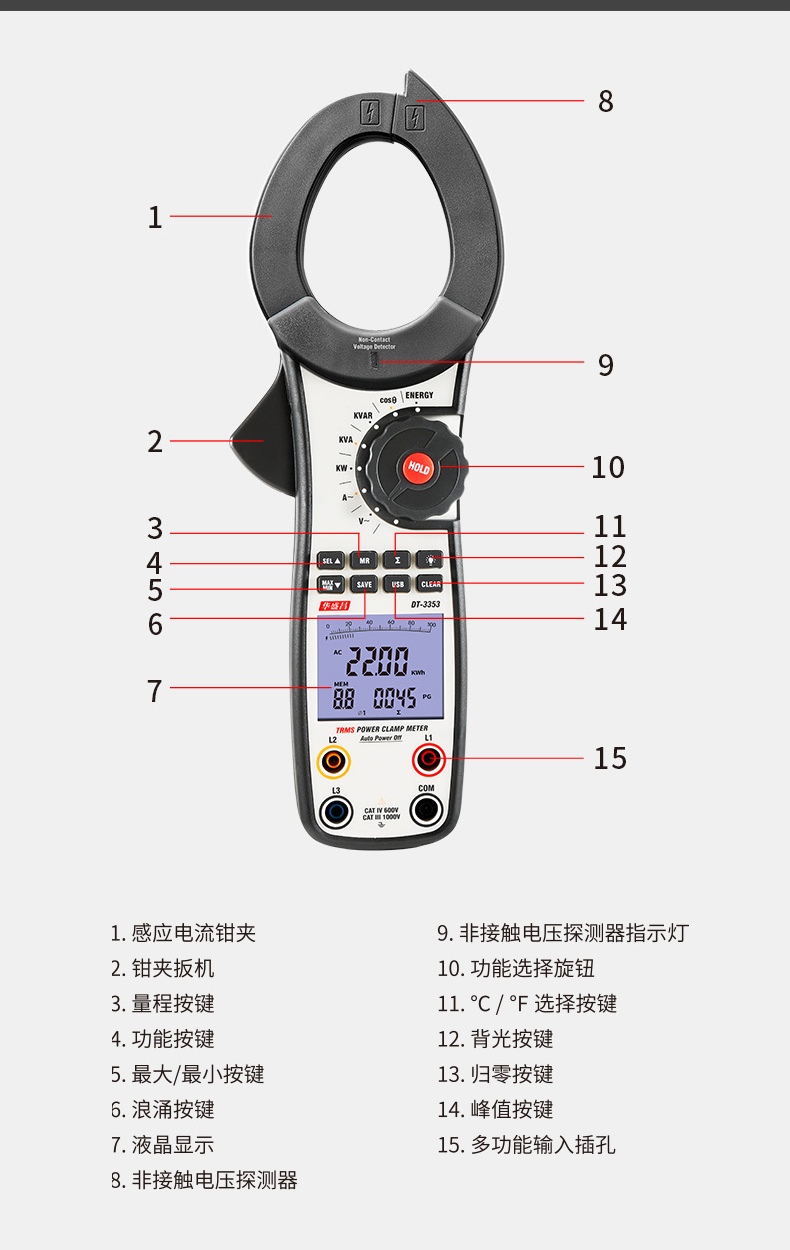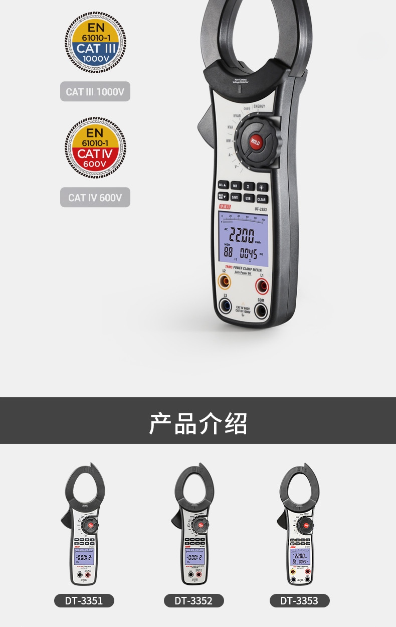 商品名称:华盛昌(CEM)DT-3353数字钳形表高精度真有效值电流表全自动数显交流大电流电流表功率表 单位:台