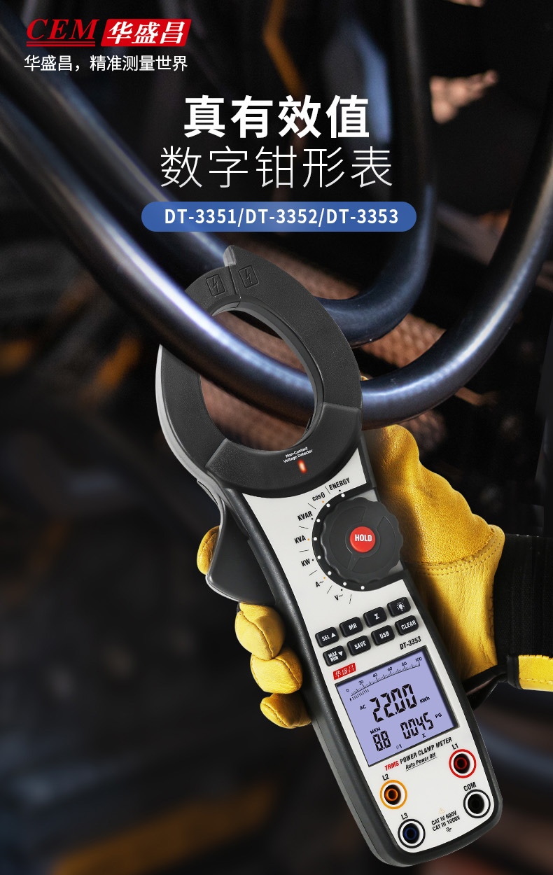 华盛昌(CEM)DT-3353数字钳形表高精度真有效值电流表全自动数显交流大电流电流表功率表 单位:台