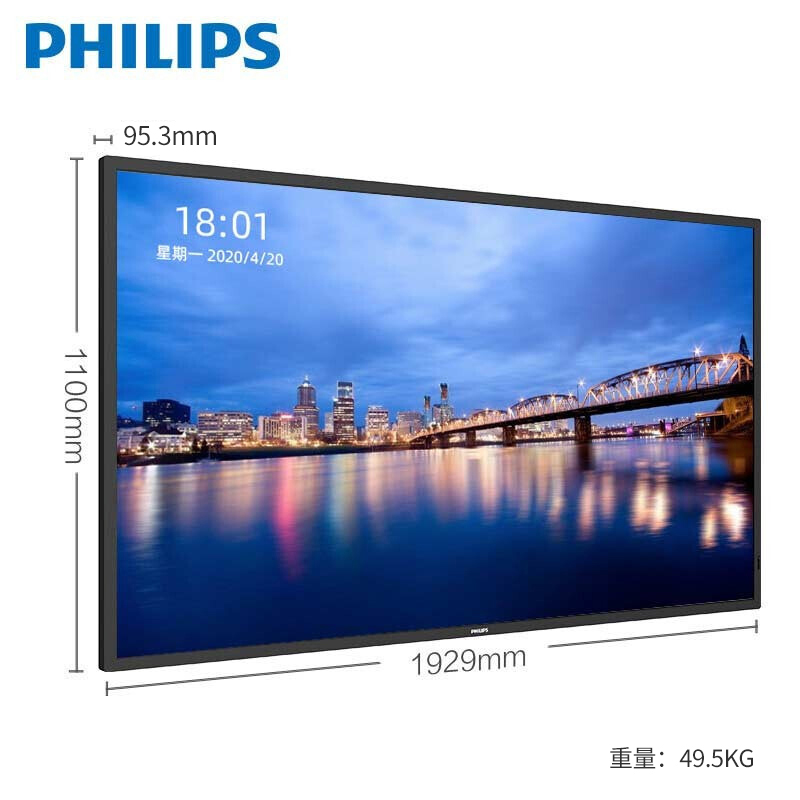 飞利浦86英寸智能壁挂广告机4K超清商用显示器银行商超楼宇电梯公共信息发布数字标牌86BDL3450Q 单位:台