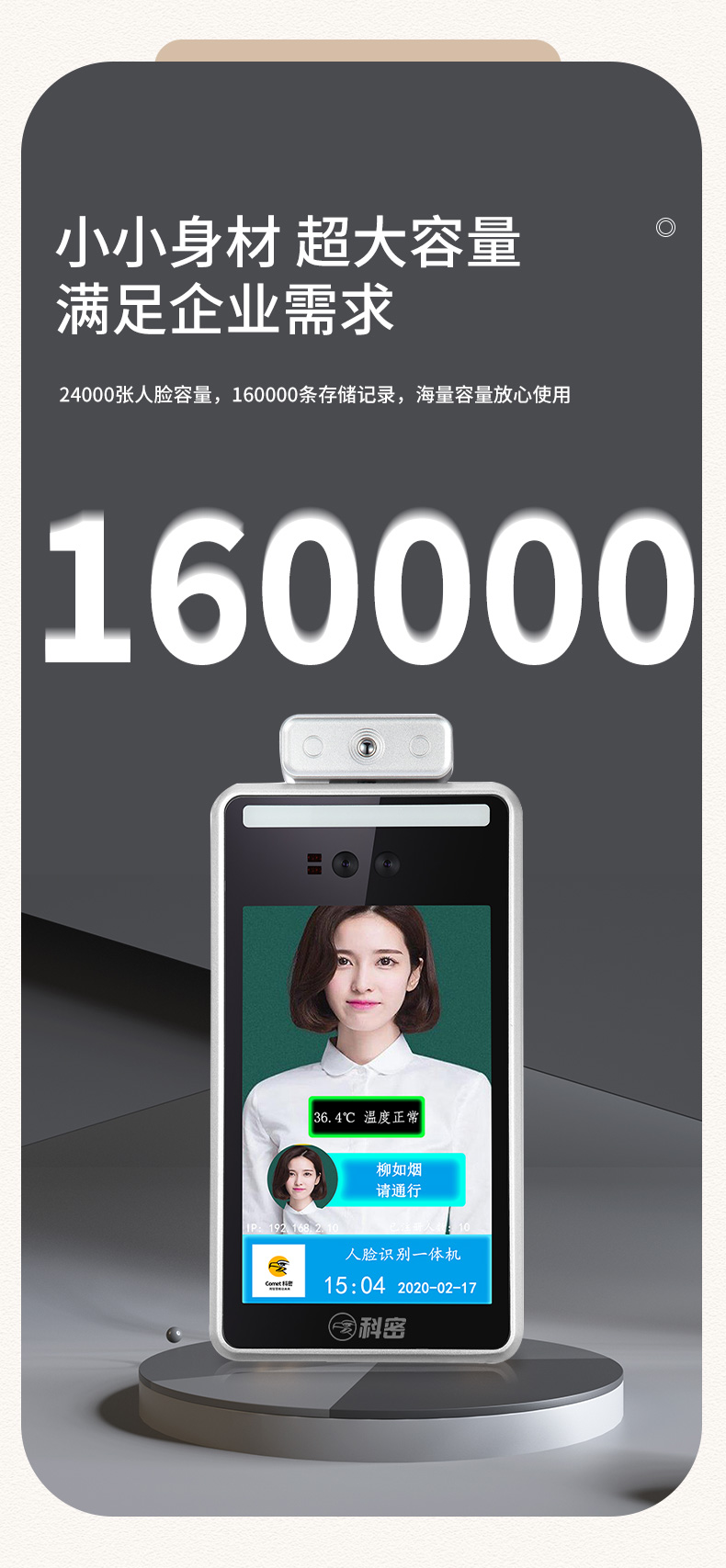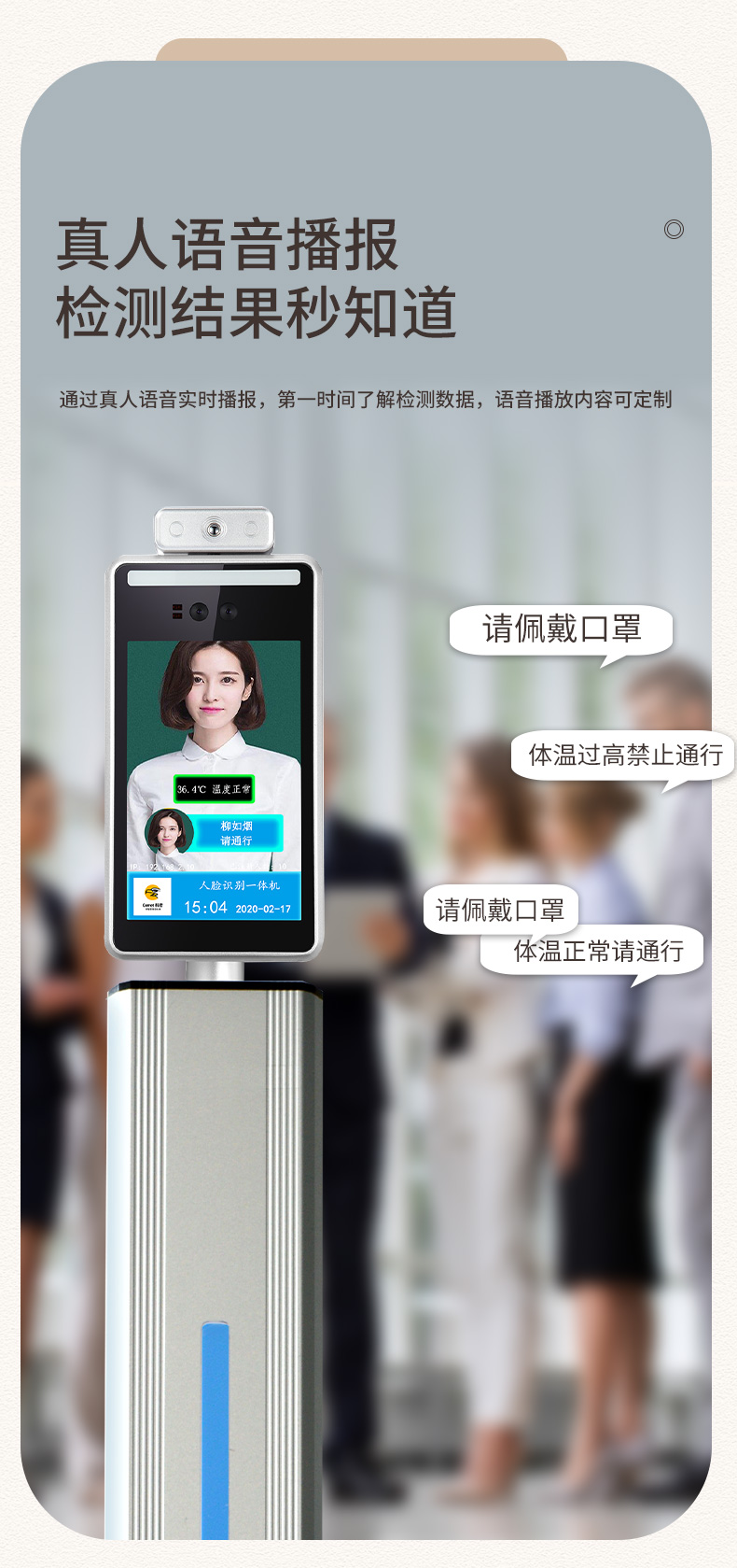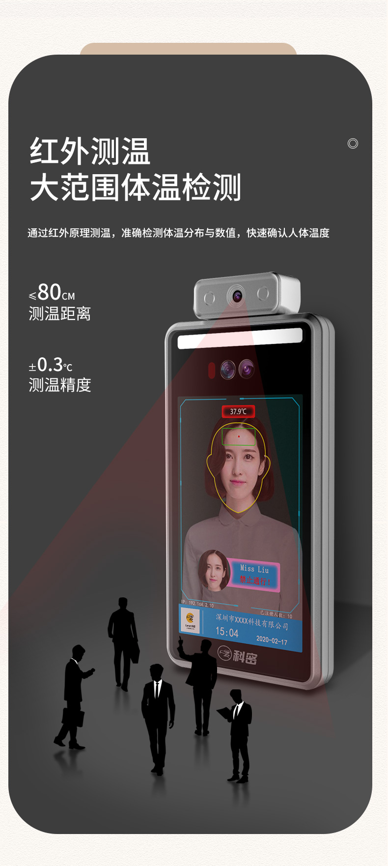 商品名称:科密 D-05L 人脸测温仪 8英寸屏人脸识别测温门禁考勤一体机 商场车站测温系统门禁机 立柱款 可定制 单位:台