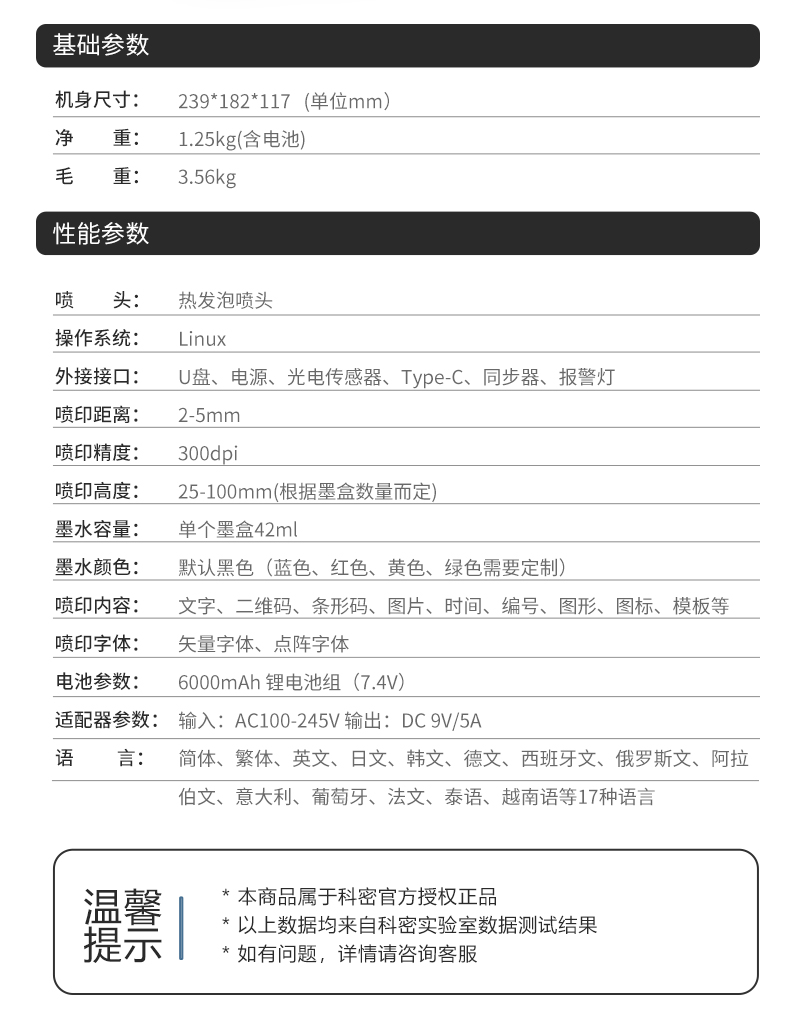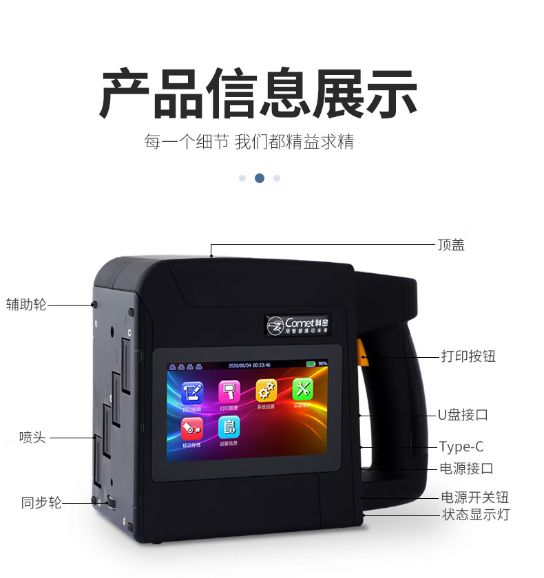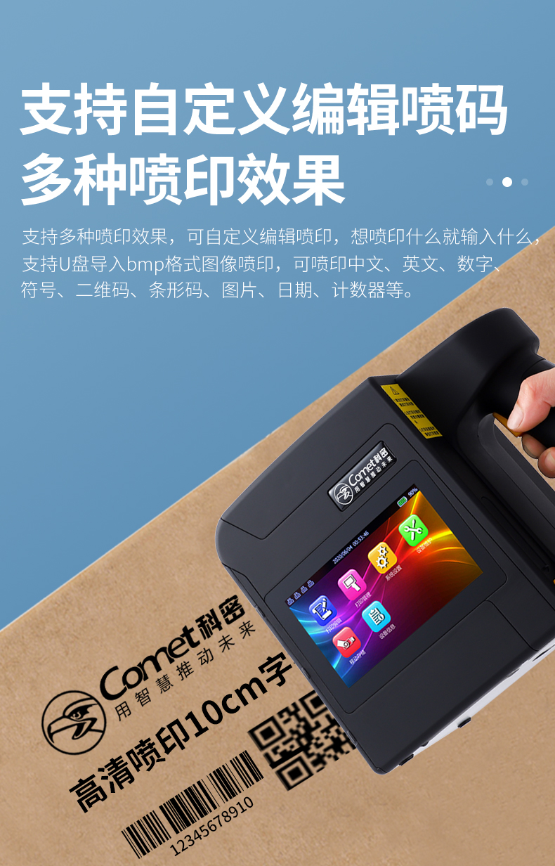 商品名称:科密(comet)M6P 手持式便携触屏喷码机打印机打码机 生产线日期条码二维码图标快干自动喷码 可固定流水线 单位:台