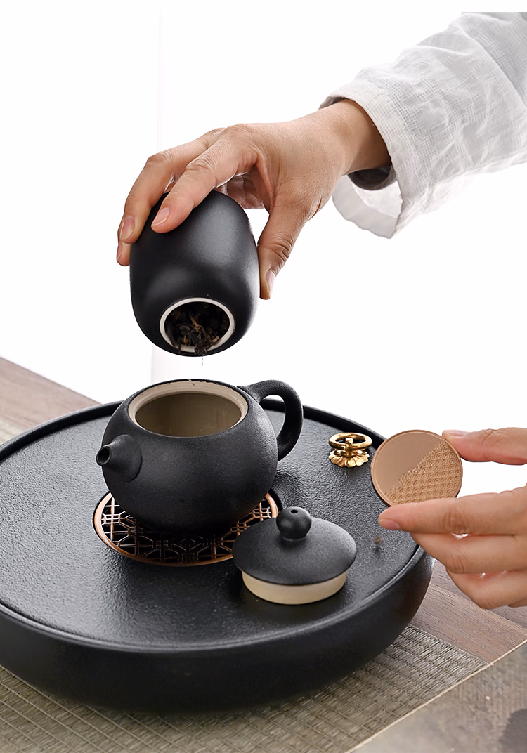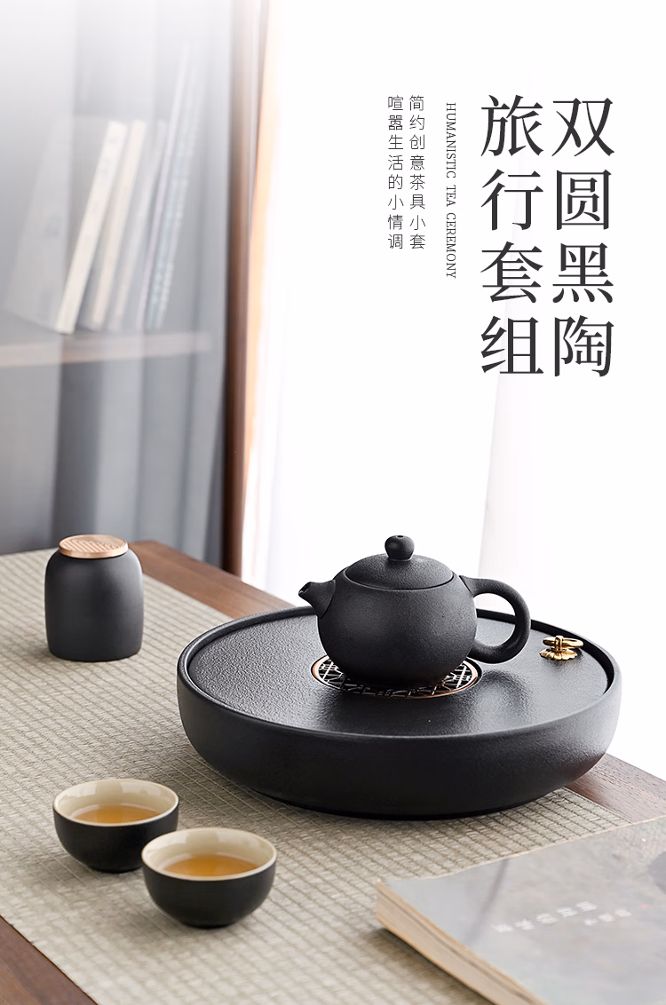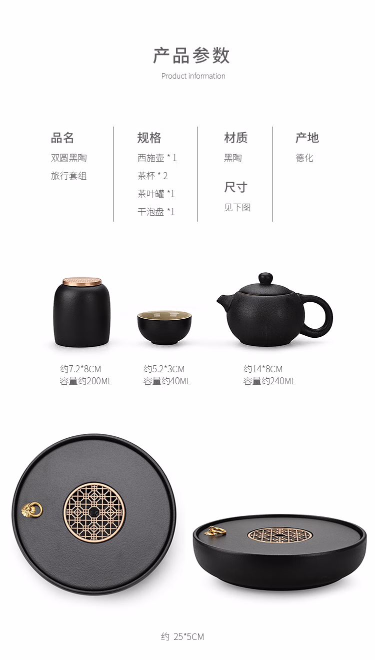 商品名称:金镶玉-JXY002-双圆黑陶旅行套组