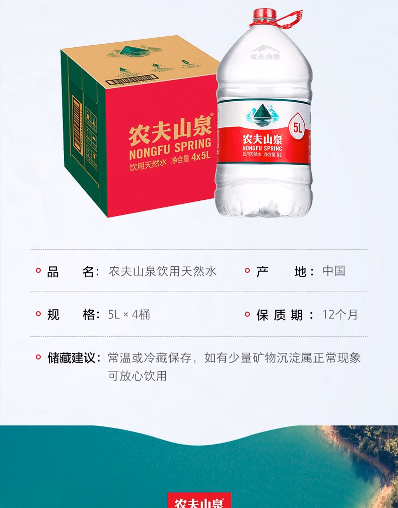 商品名称:农夫山泉-桶装水-饮用天然水-5L*4桶