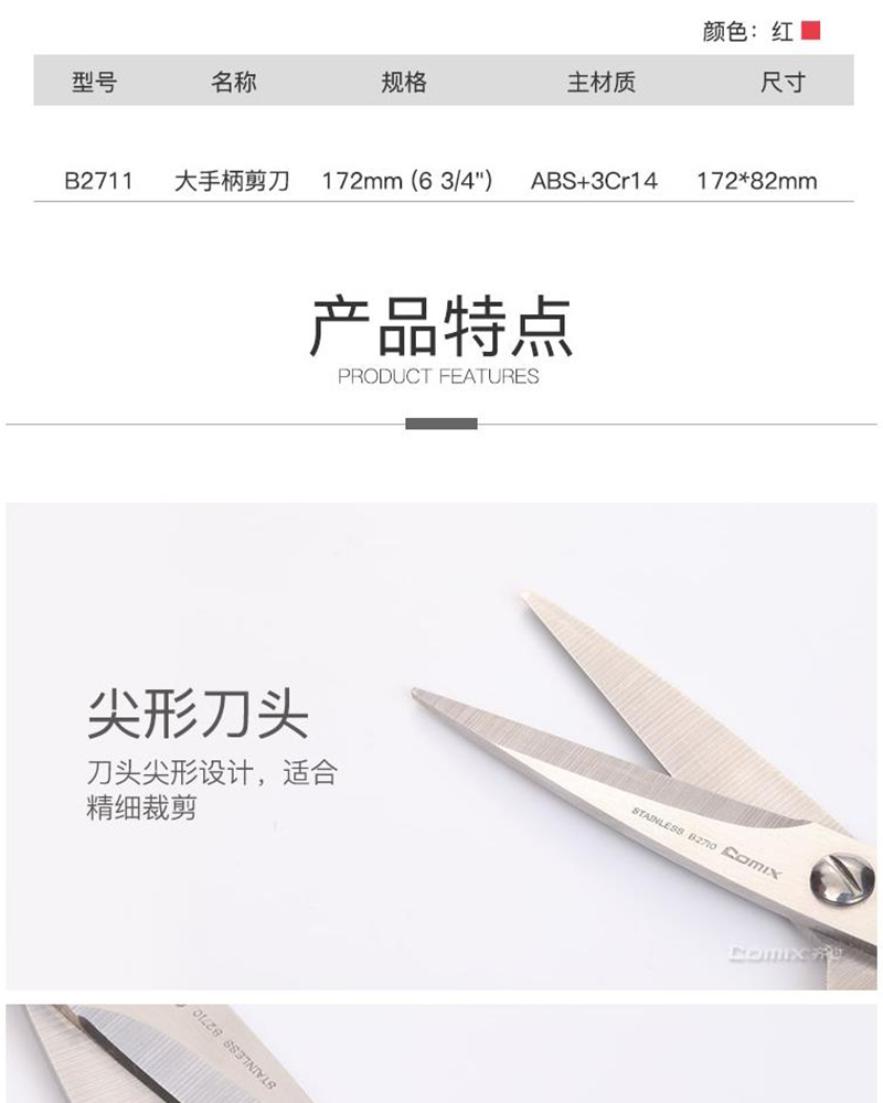 商品名称:齐心(Comix)-B2711-剪刀-大手柄-172mm