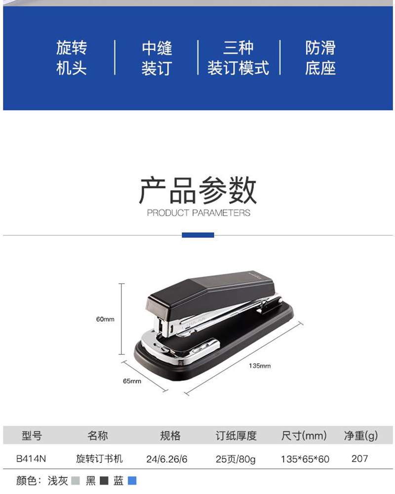商品名称:齐心(Comix)-B414N-可旋转订书机-黑色