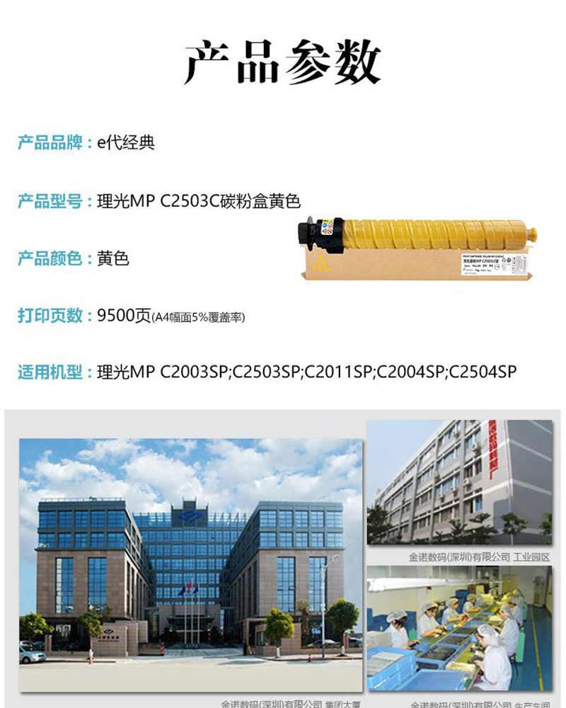 商品名称:e代经典-MPC2503C-碳粉盒-黄色 适用MP C2003SP C2503SP C2011SP C2004SP C2504SP