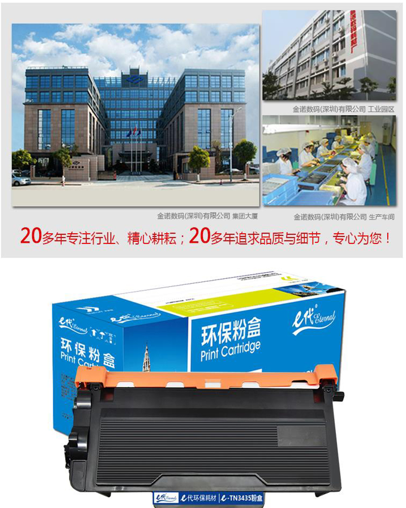 商品名称:e代经典-TN3435-兼容粉盒经典装-适用机型:兄弟HL5580D/5585D/5590DN/5595DN/MFC8530DN/8535DN/8540DN 打印页数:3000页-黑色